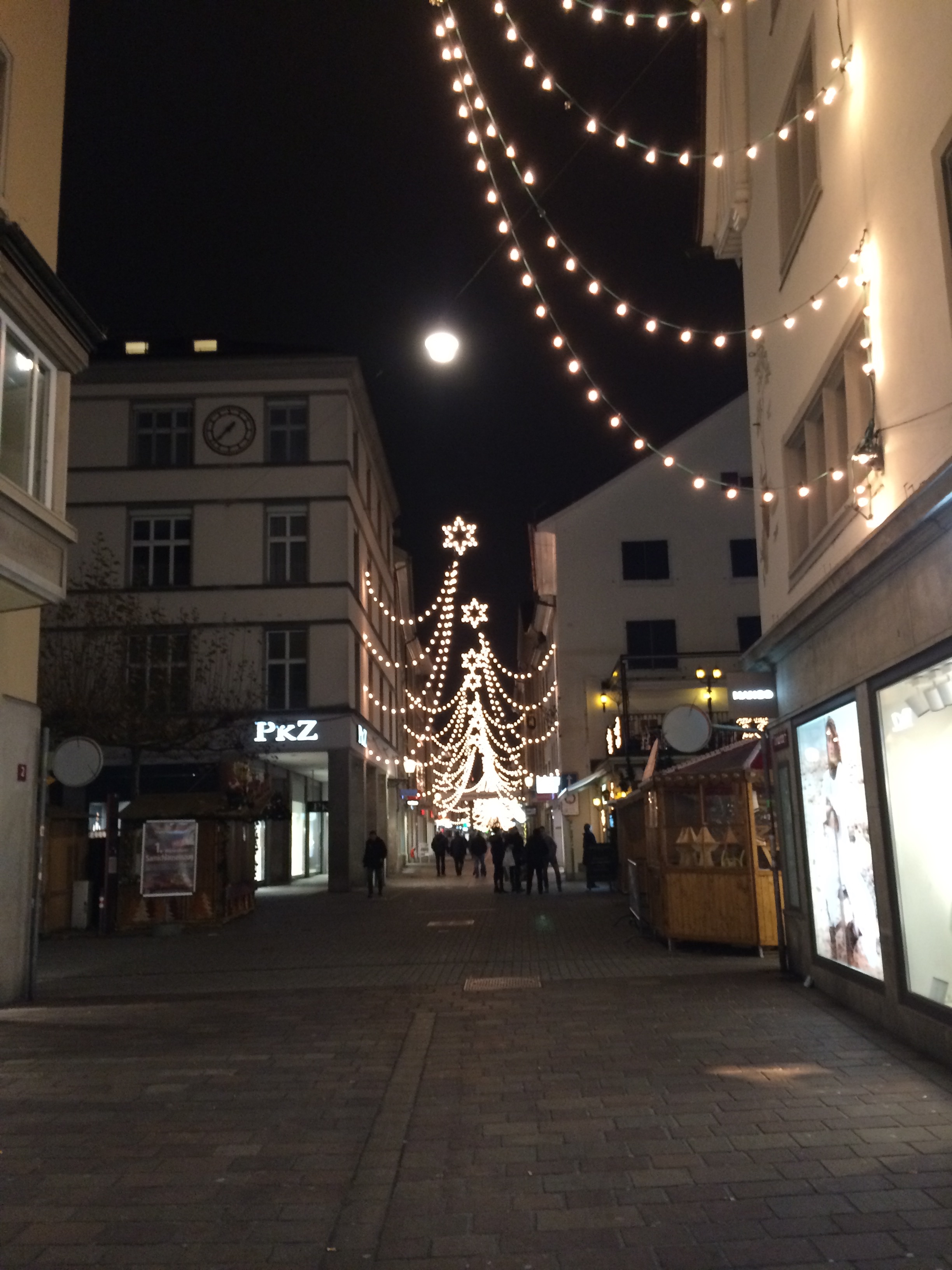 Habe ich mich beim ersten Anblick der lokalen Weihnachtsbeleuchtung einfach schüli gefreut. Sie ist so schön! Wenn auch nicht von Tina Turner gesponsert und ohne klingenden Namen und neuerdings LED-ig, so passt sie doch einfach perfekt in unseren „Schluuch“!