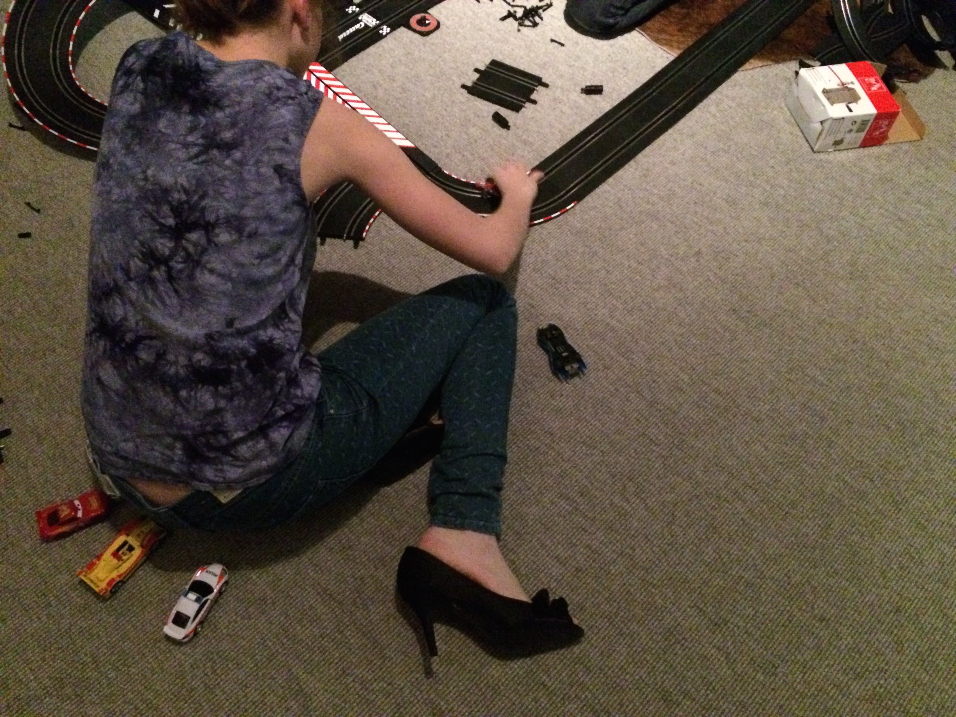 Wie anders lässt sich sonst erklären, dass AnnA beim Carrera-Bahn fahren die High Heels für den Schulsilvester einträgt…. aha, stimmt, AnnA hat ja auch noch Geburtstag nächste Woche. Ich werde berichten.