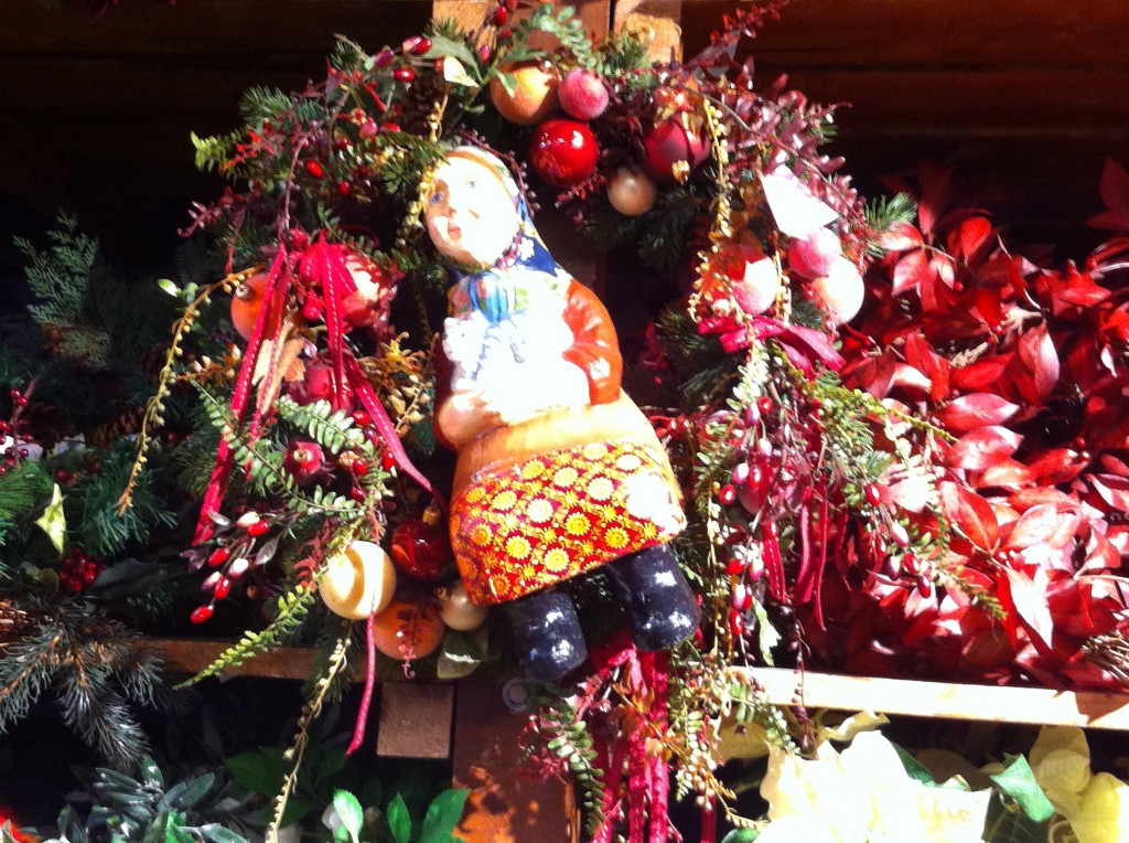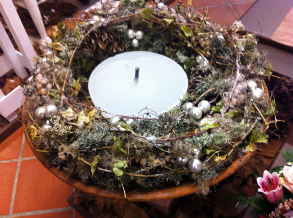 Wenn jetzt der Eindruck entsteht, es hätte uns nicht gefallen, dann täuscht das ganz gewaltig. Es gab wunderschöne Bettwäsche mit Eisbären drauf (Duvetanzug für Fr. 460.- ups), es gab schöne Bänder, Kugeln und einen genialen Kranz mit Pinienzapfen, den ich aber leider nicht fotografiert habe. Immerhin, der naturschöne Kranz aus Nielen, Beeren, Zapfen und nur wenig künstlichem Zeugs, hat es mir auch angetan.