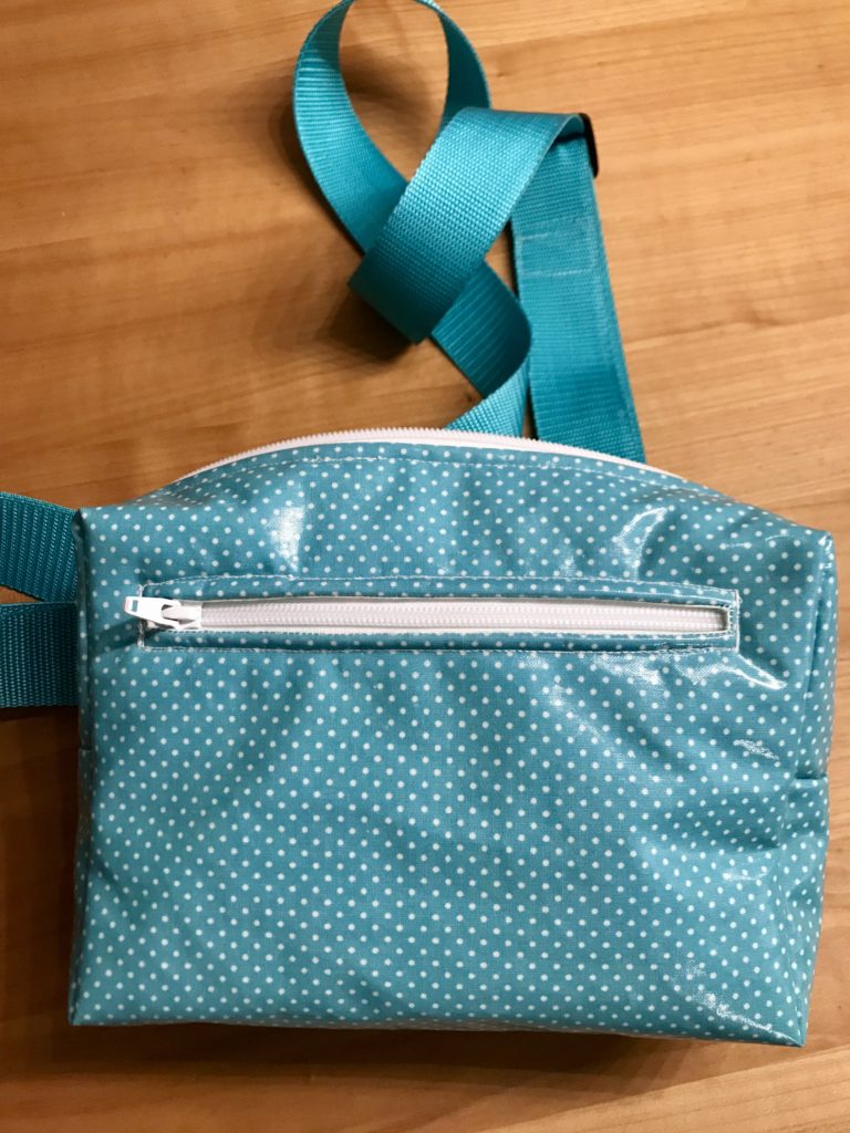 Die Farben haben mich schon länger gelockt…. letzte Woche habe ich umgesetzt. Bitte sehr, ein weiteres Bauchtäschchen für Hundespaziergänge oder andere Händefrei-Aktionen. Fakt ist, das Täschchen hat eine perfekte Grösse, die Befestigung am Bauch oder über die Schultern ist für alle Fälle (oder Felle?) geeignet und es macht Spass, das Teil zu nähen.
