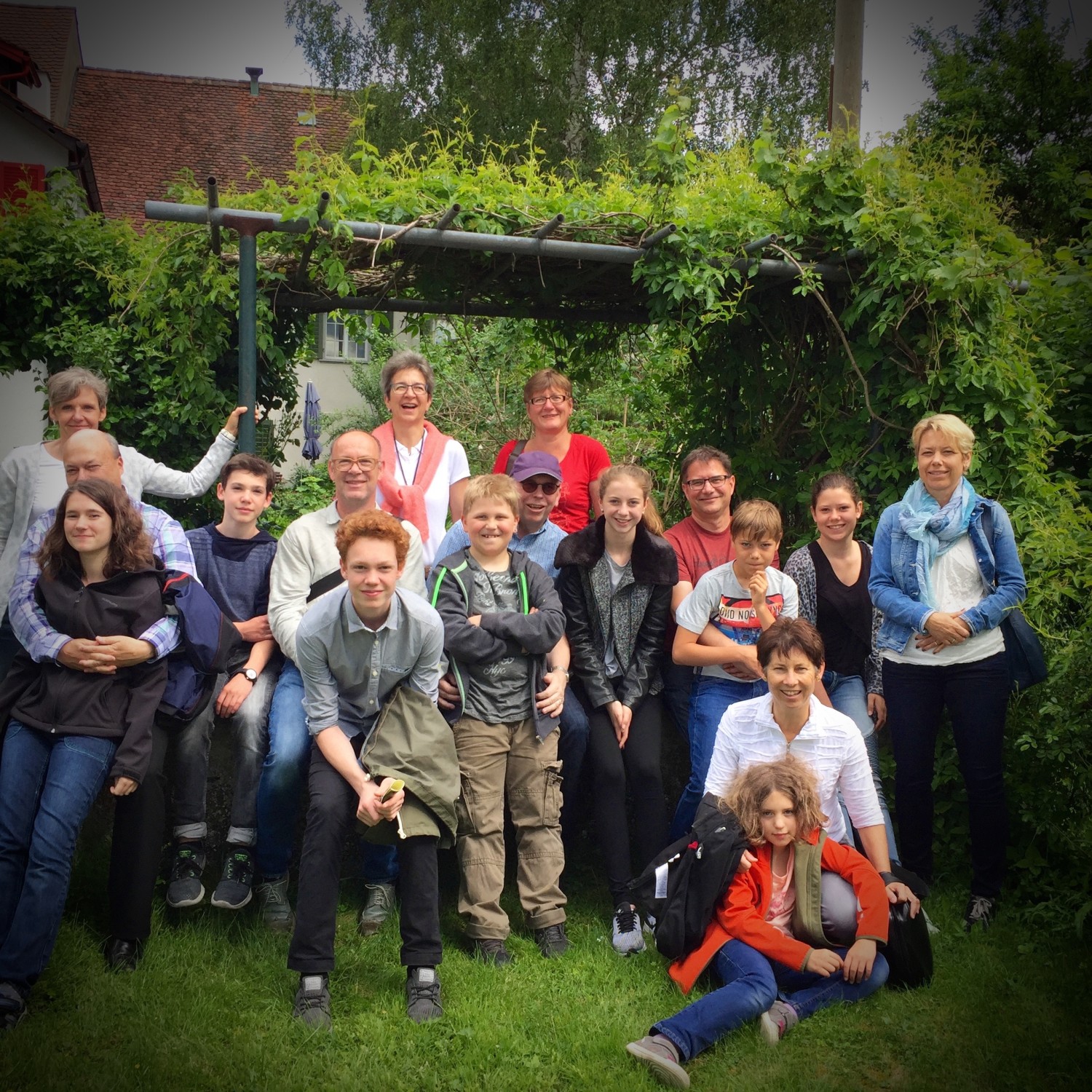 Weiter ging es über den Seerücken nach Berlingen ins Adolf-Dietrich-Haus. Und da haben wir es sogar geschafft, ein Gruppenbild zu machen. Aber erst einmal büscheln sich die Herren.