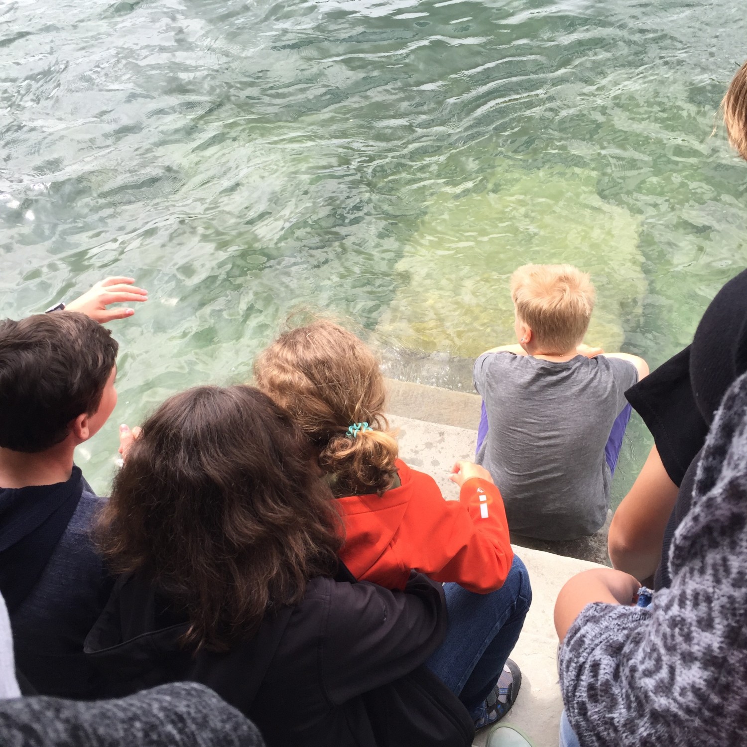 Das Sonntagswetter war misslich. Aus der angedachten Schiff-Fahrt wurde nichts, wir haben uns in Stein am Rhein verlustiert. Eric wollte einfach „äs bitzeli“ am Rhein sitzen. Erstaunlicherweise ist weder Florian (ganz links) noch Lara oder Sabine, auch nicht Eric und auch nicht Jasmin oder Tim reingefallen. Die Kinder werden wirklich grösser!
