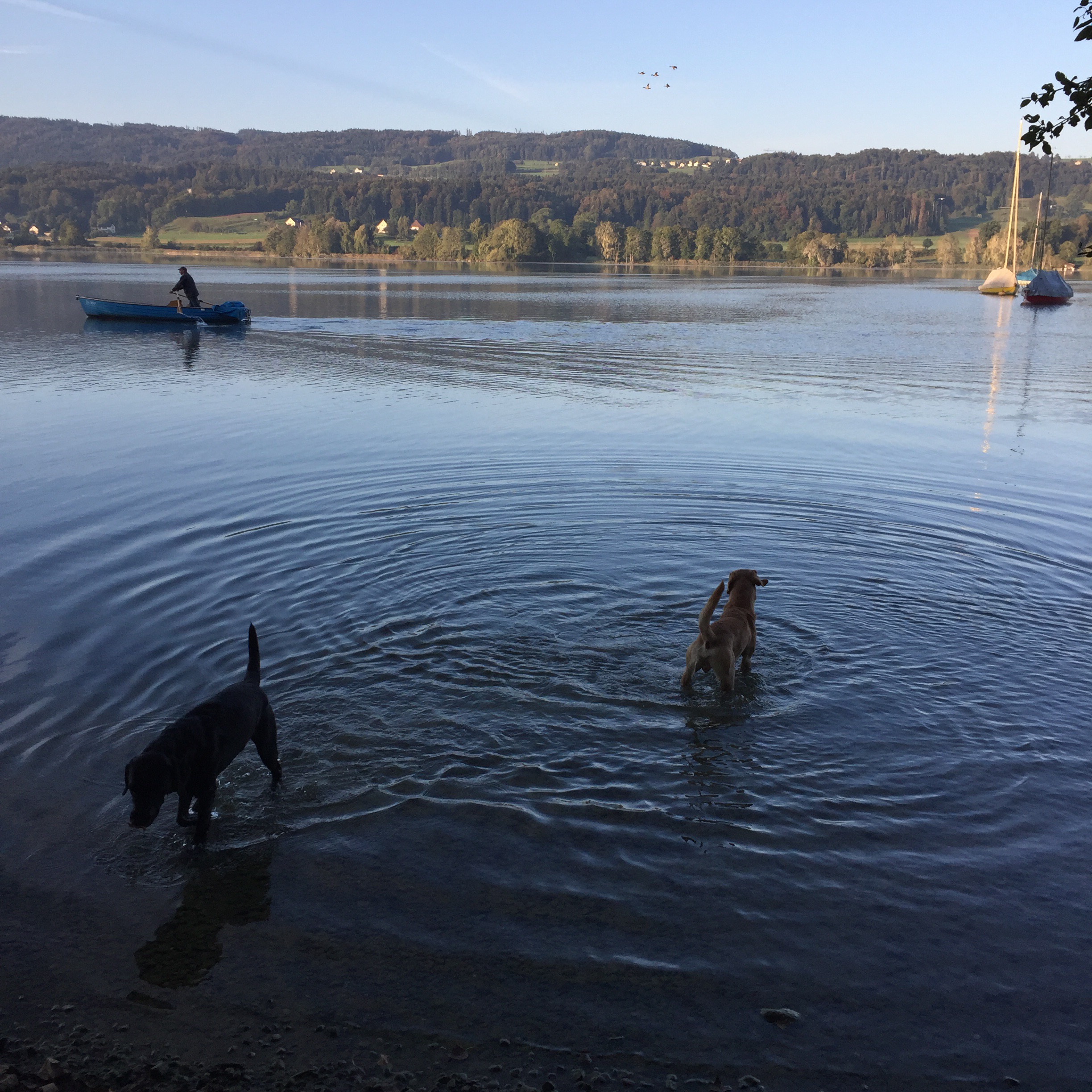 Eine Greifenseeidylle mit Fischerboot und planschendem Elio!