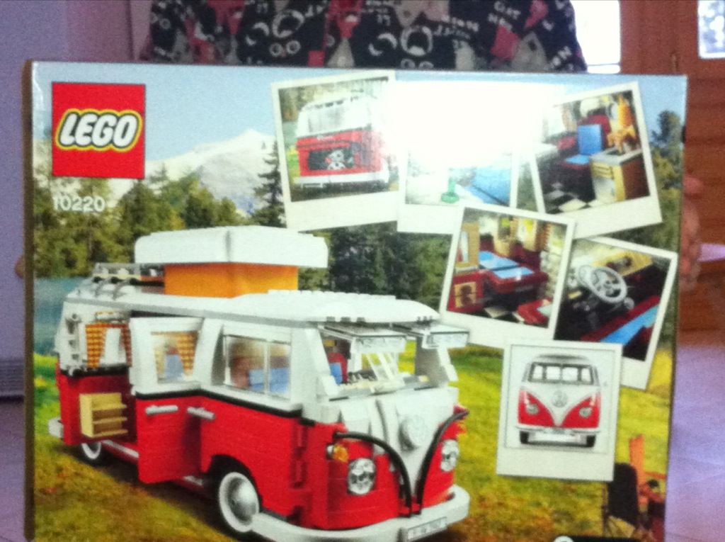Genau, den VW-Bus von Lego aus 1332 einzelnen Teilen! Flower Power Aufkleber inbegriffen…