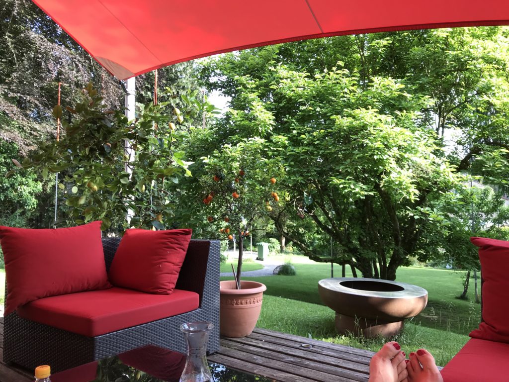 Nach der ganzen hektischen Woche mit fulminantem Abschlussfeuerwerk (Besuch aus USA – unbekannte Familienmitglieder haben ihre Heimat erkundet und uns besucht – spannend!) tat es gut, den Sonntag faul in der Lounge liegend anzugehen. Es gibt viel nachzudenken, anzupacken, zu ordnen und zu regeln, bevor die Sommerpause wie ein bleischwerer Deckel über uns allen hängt. Wir bleiben dran. Und sausen weiter.