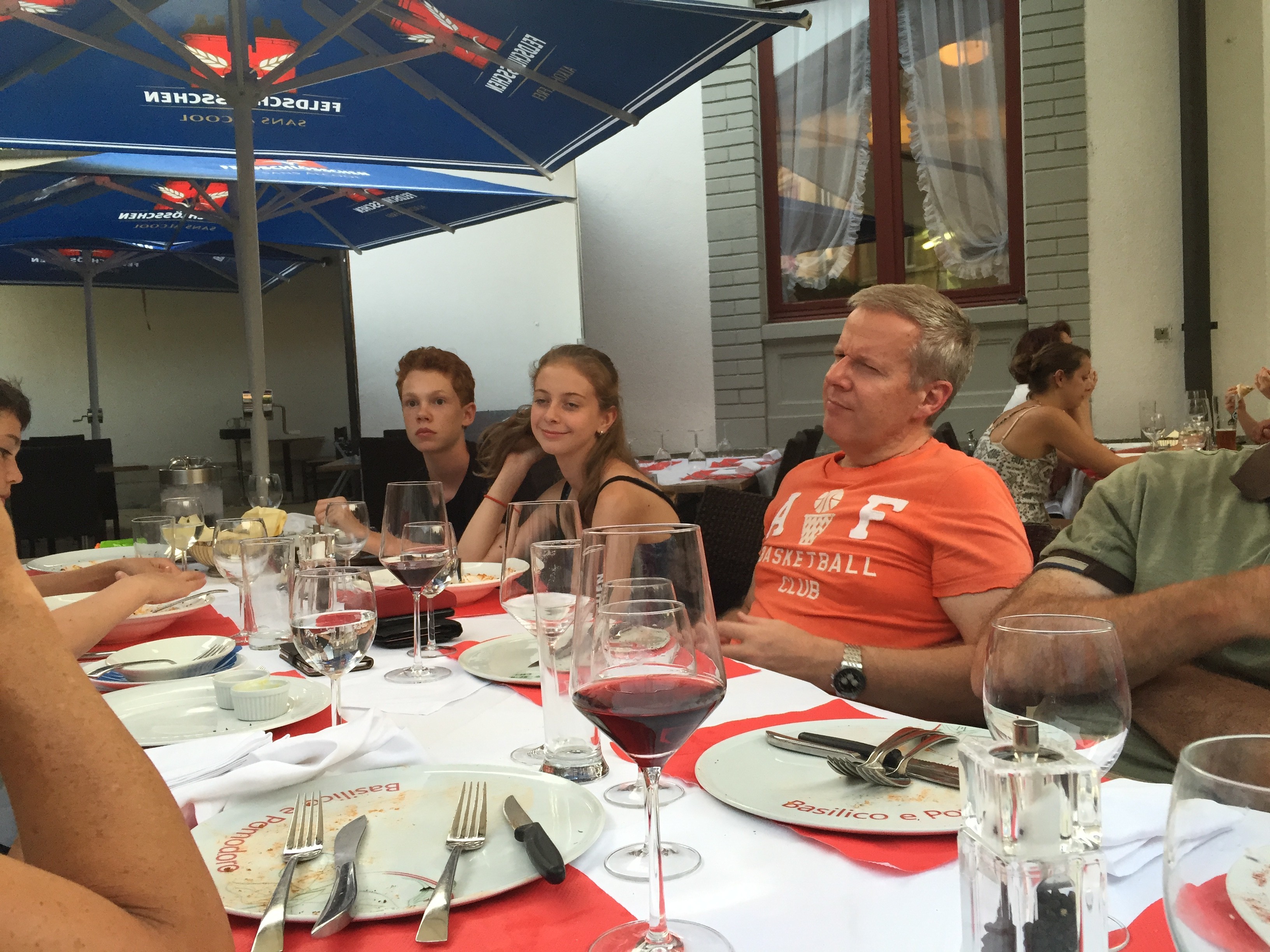 Am Freitag haben wir uns sehr über den Besuch von AnnA’s Gotti Susanne mit Hans, Luca und Florian gefreut – exakt zur Poolparty sind allerdings drei homöopathische Regentropfen über Winterthur niedergegangen und haben für soviel Abkühlung gesorgt, dass wir bei Giovanni im Garten des San Remo ausgiebig und ausgezeichnet den Abend geniessen konnten.