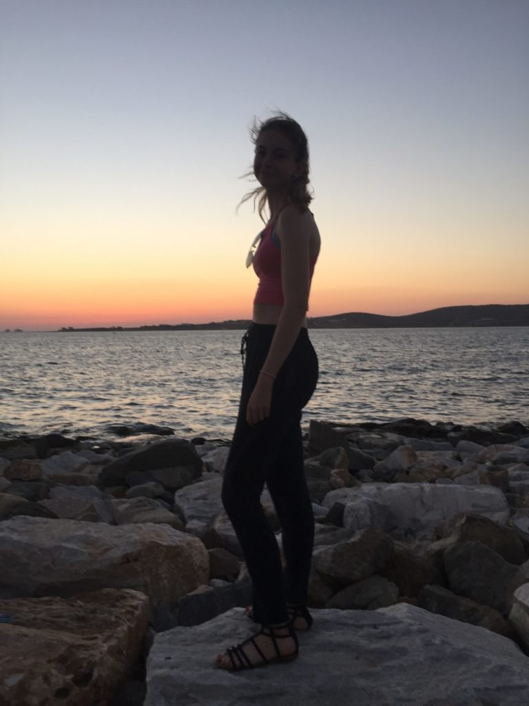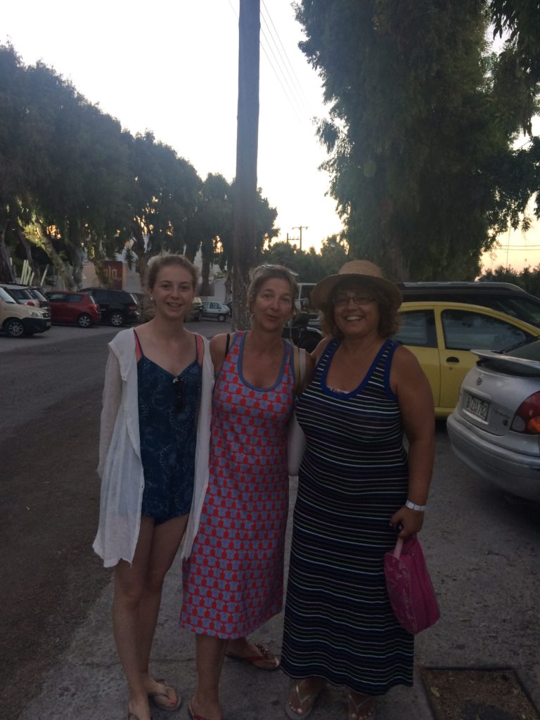 Wir haben mit Griechinnen (hier im Bild Ginas Freundin Ewa) viel diskutiert, über das Oktoberfest und wie man da die Oberweite zur Schau stellt, über Saunas und Regierungssysteme, über Wahlen und die griechische Krise… es ist schön, wenn man so offen diskutieren kann!
