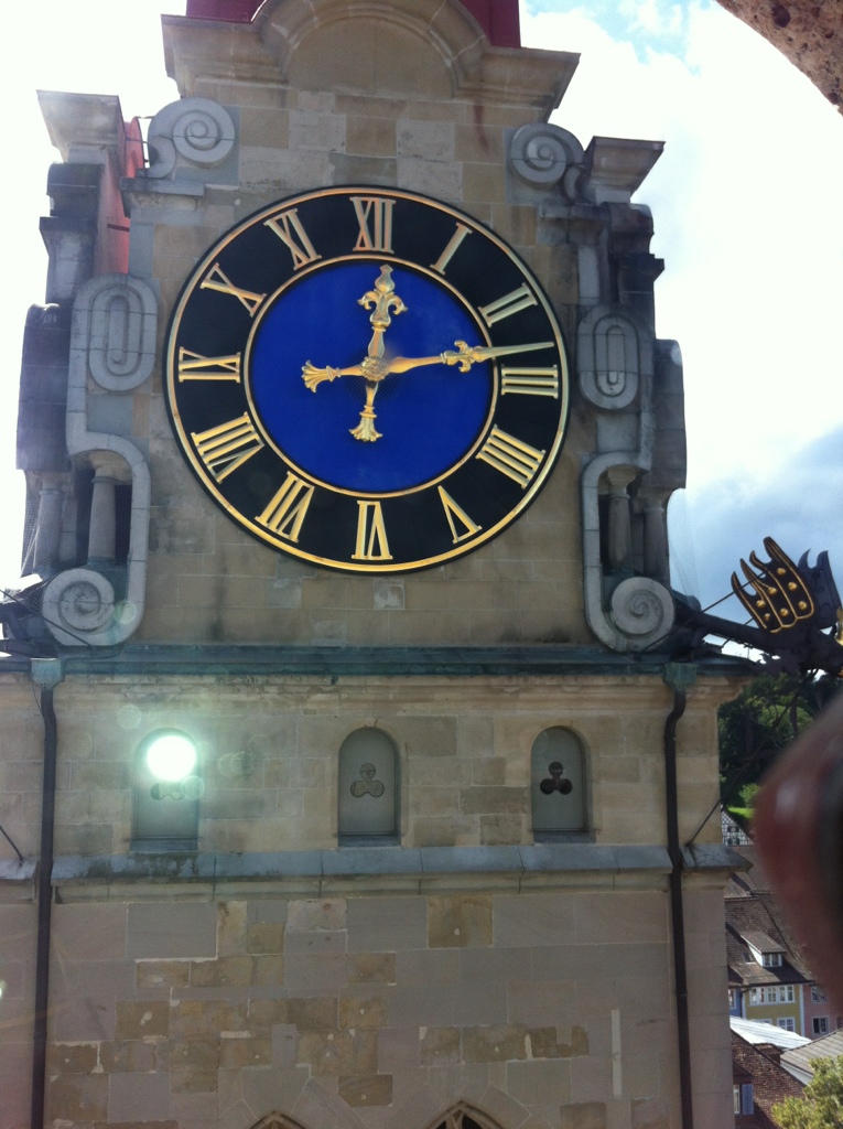 Es zieht sich noch, bis man da ganz oben ist und wir haben spannende Ausblicke genossen. Beispielsweise den Anblick sozusagen Auge in Auge mit dem Zifferblatt!