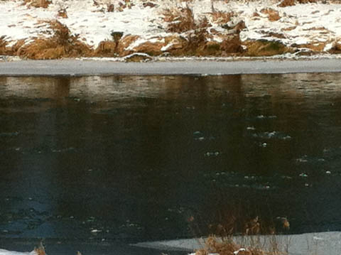 Guckt man etwas genauer in die Thur, schwimmen da Eisbrocken. Brrr!