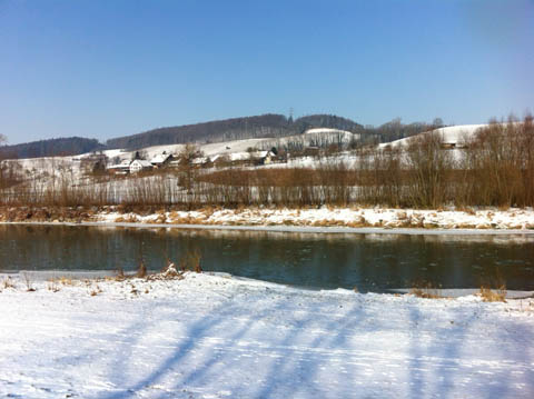 Die prognostizierte sibirische Kälte ist hier. Dankeschön! wir haben wunderbares Winterferienfeeling, bereits beim Gang an den Briefkasten, um die Zeitung zu holen. Es ist kalt. Sehr kalt. Kappe, Handschuhe, warme Socken, Strumpfhose… neuerdings auch in den Niederungen. Dazu hat es geschneit. Nicht wenig und weil es so kalt ist, hält der Schnee! Eine wunderschöne Schnee-Winterlandschaft an der Thur: