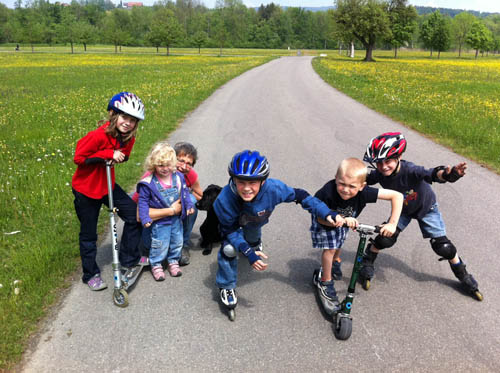 Am Sonntag sind wir auf die Frauenfelder Allmend aufgebrochen, mit Kickboard, mit Inline-Skates, zu Fuss, mit Hund und Dummies… es war seeeeeeeeeeeehr warm ulnd die Allmend alles andere als menschenleer. Schweizer Meisterschaft im Slalomfahren, Formel 3, sei das, erklärte man uns. Oha. Es war laut, stinkig, spannend… dann wieder Pause. Schon wieder hatte einer seine Rennbolide in die Strohballen parkiert. Mit Schwung. Und das dauert dann etwas… Fazit: spannender als jede Demo, definitiv netter und auch eine schöne Gelegenheit Frischluft zu schnuppern und Kinder müde zu machen. Wir wünschen Euch eine schöne Woche!