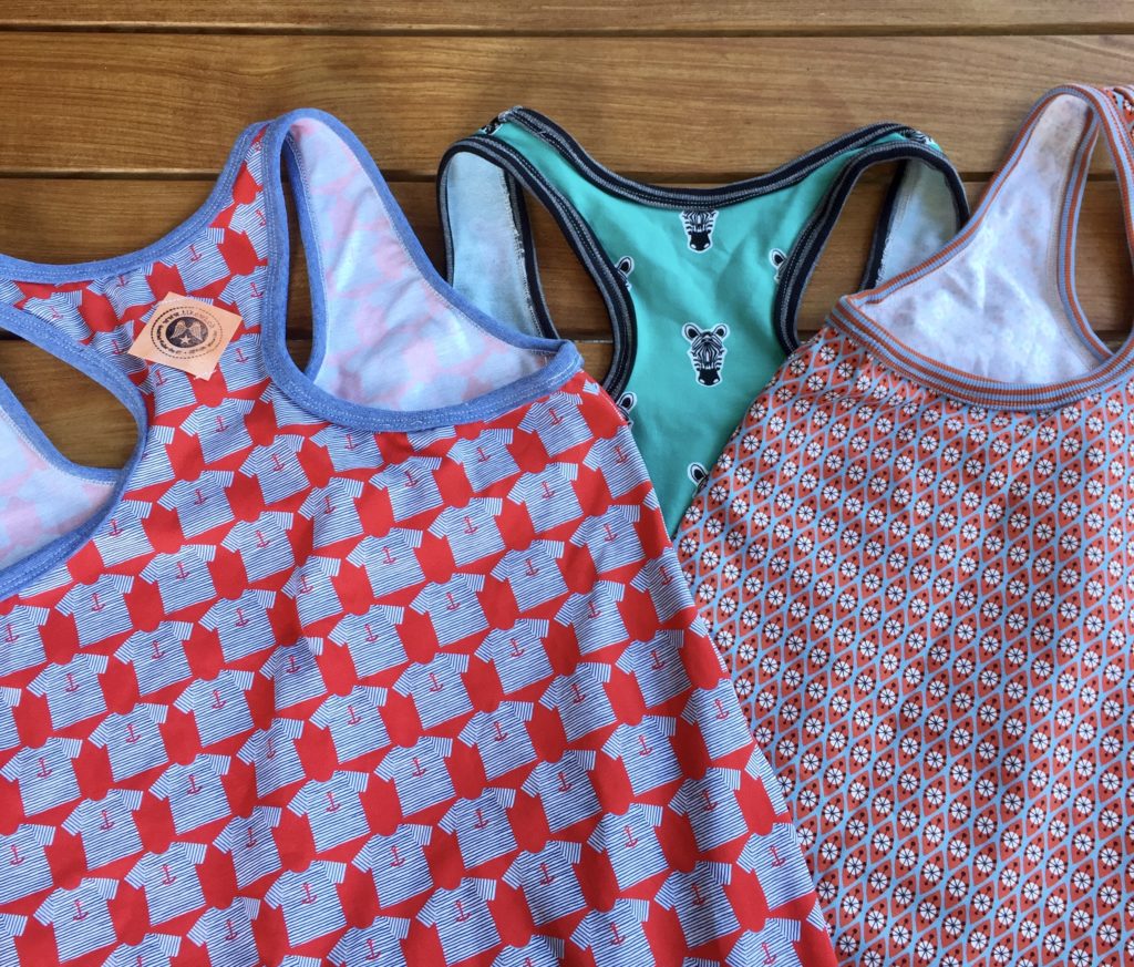 Nach geglücktem Prototyp, mittlerweile auch endlich fertig geworden sind die zwei Racer-Back-T-Shirts und das „Über-die-Badehose“-Kleid, alles bereit, Sommerferien ahoi, wir kommen! ok, gebügelt habe ich noch nicht… man muss eben Prioritäten setzen.