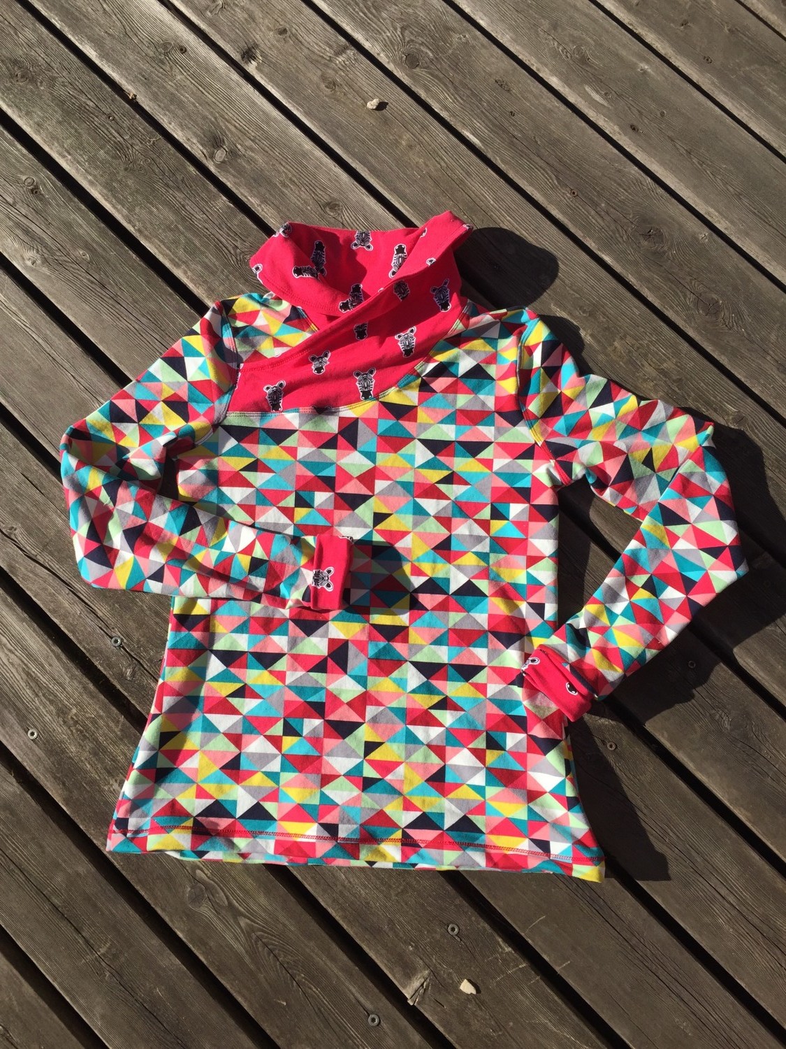 Eine „Mara“ von www.farbenmix.de – die erwachsene Version des Matteo (für Boys). Dank freundlicher Beratung in der Merci Andelfingen habe ich mich zu diesem Stoff hinreissen lassen. Danke Fränzi, er ist wunderschön geworden!