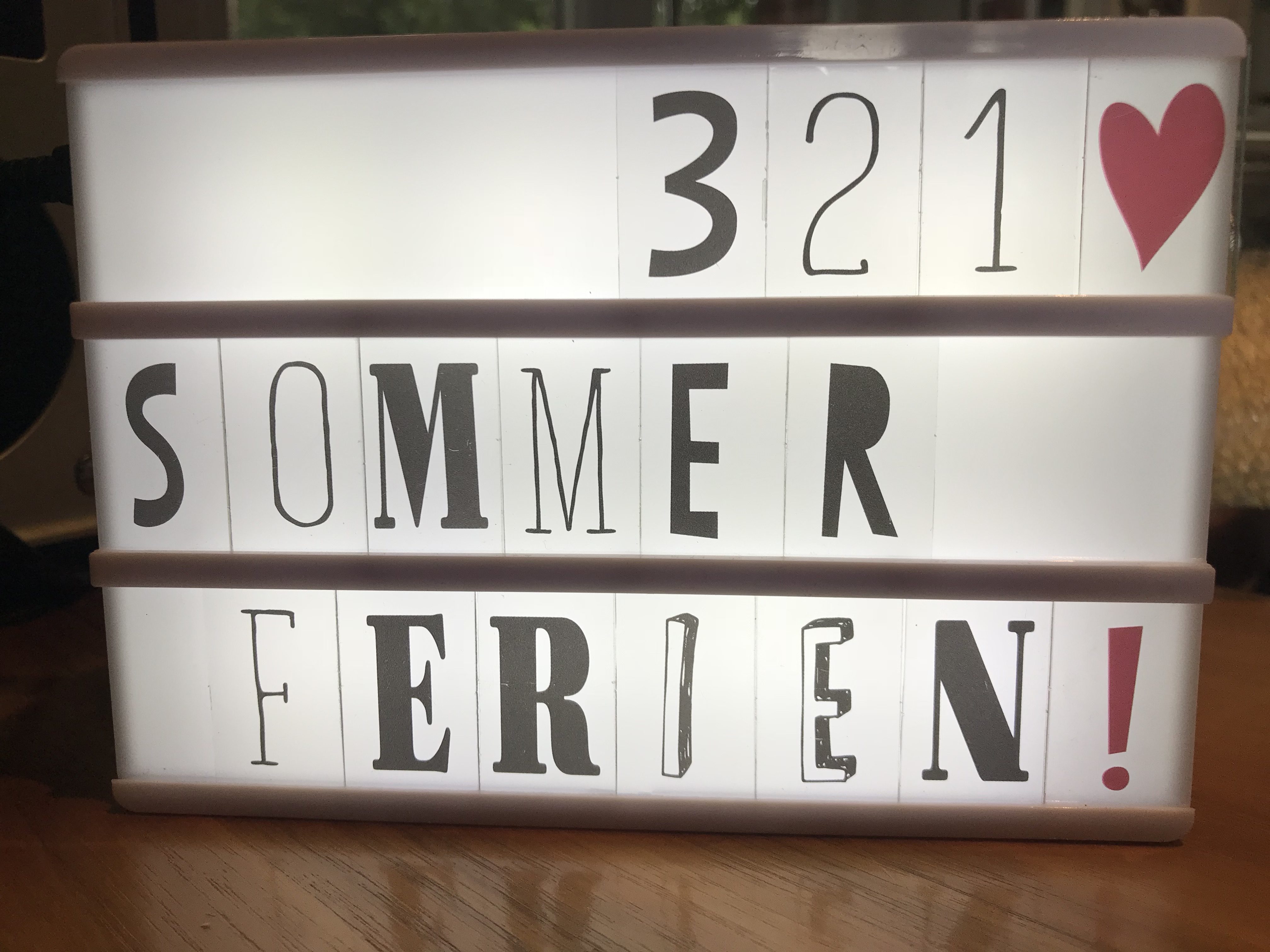 Jetzt geht es ratzfatz 3, 2, 1 und schon sind Sommerferien. Endspurt, los! die letzten Prüfungen und dann alle verschobenen Arzttermine nachholen, Brille kaufen, Schuhe für das Kind, die letzten Notwendigkeiten für das Pfadilager, packen und DANN plumps, aus amen, FERIEN!