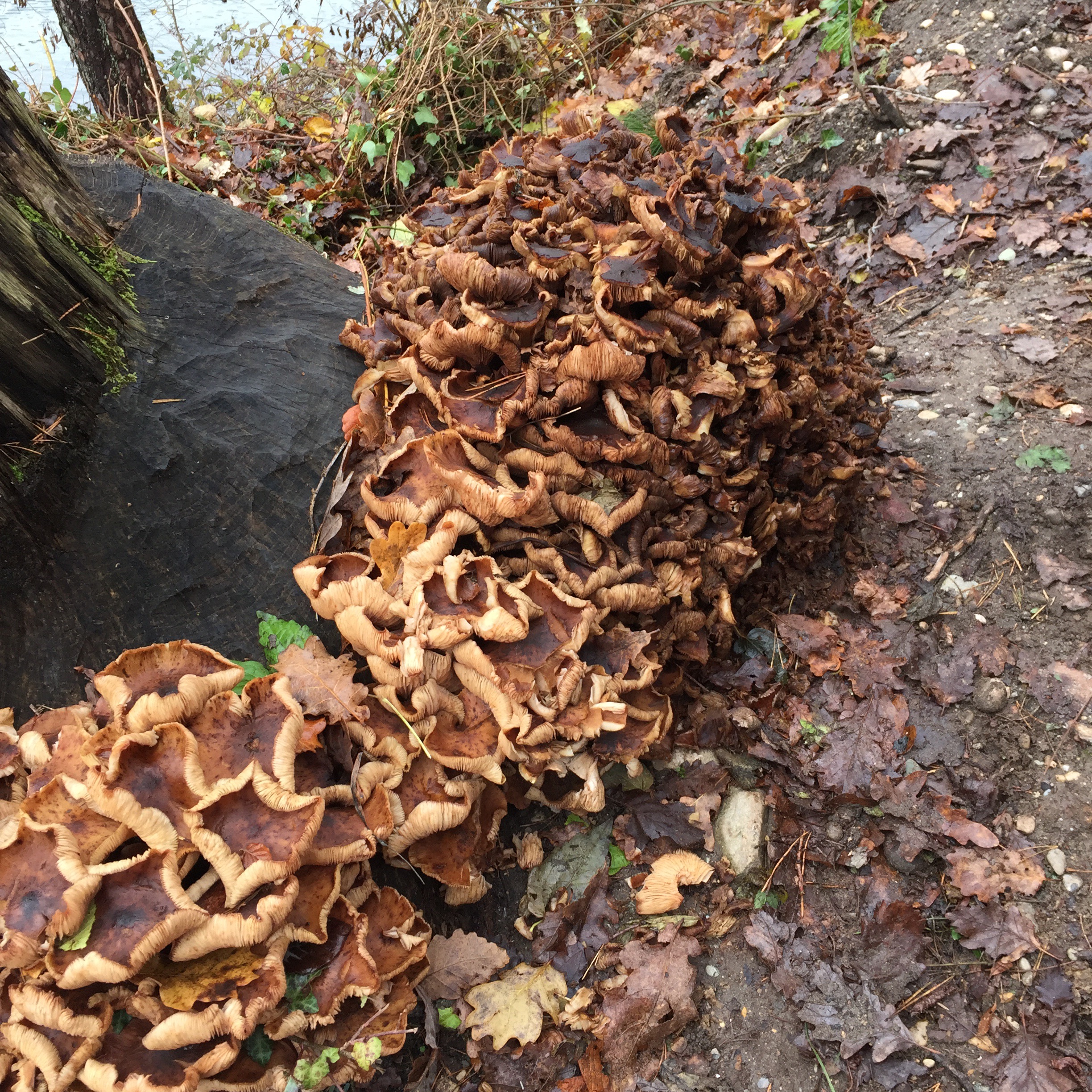 Frei nach dem Motto, es ist nicht alles Laub, was so aussieht, habe ich beim genaueren Hinsehen jede Menge Pilze entdeckt.