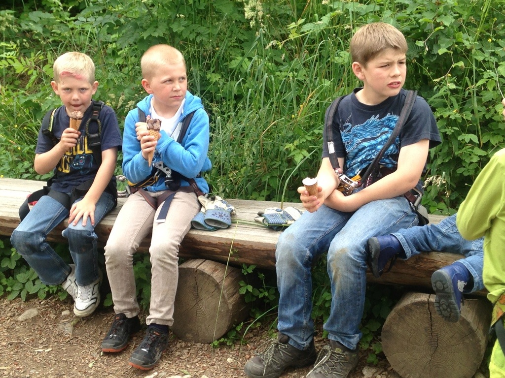 Von links: Simon, Eric und Florian! Irgendwo weit aussen verwandt, aber nur noch in homöopathischen Dosen. Spass hatten wir alle im grossen Rudel im Seilpark. Und müde sind auch alle geworden!