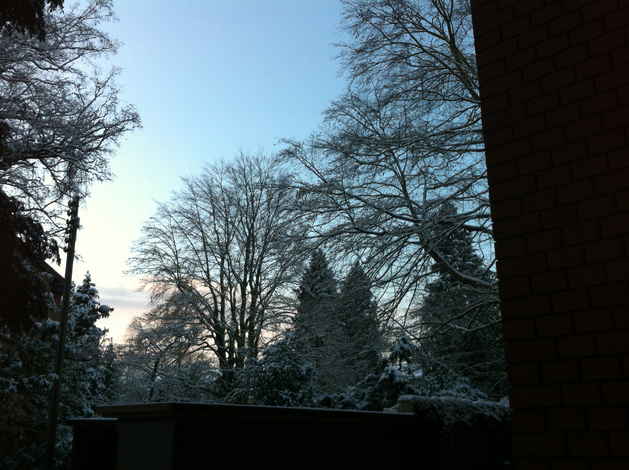 Genau, gestrichen voll habe ich die Nase vom Schnee. Es kann doch nicht sein, dass wir uns am 14. März 2013 beim Erwachen mitten im Winter wähnen! Immerhin zeigt sich auch die Sonne und -das Foto stammt von 0715h- es ist schon ziemlich hell.