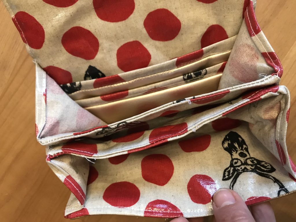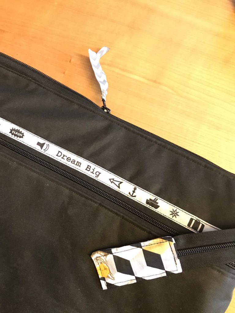 Hier allerdings motzte meine Nähmaschine lautstark. Zu dick die zu verarbeitenden Lagen und so richtig flutschen halt auch die beschichteten Stoffe nicht unter der Nähmaschine durch. Schauen wir mal, wie lange das hält….