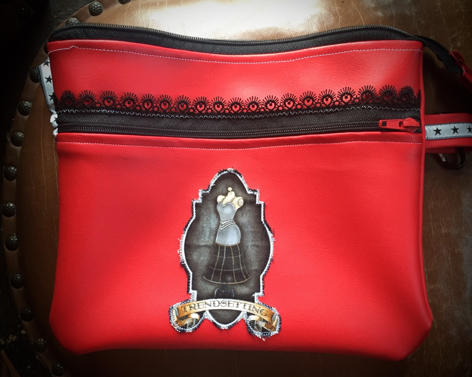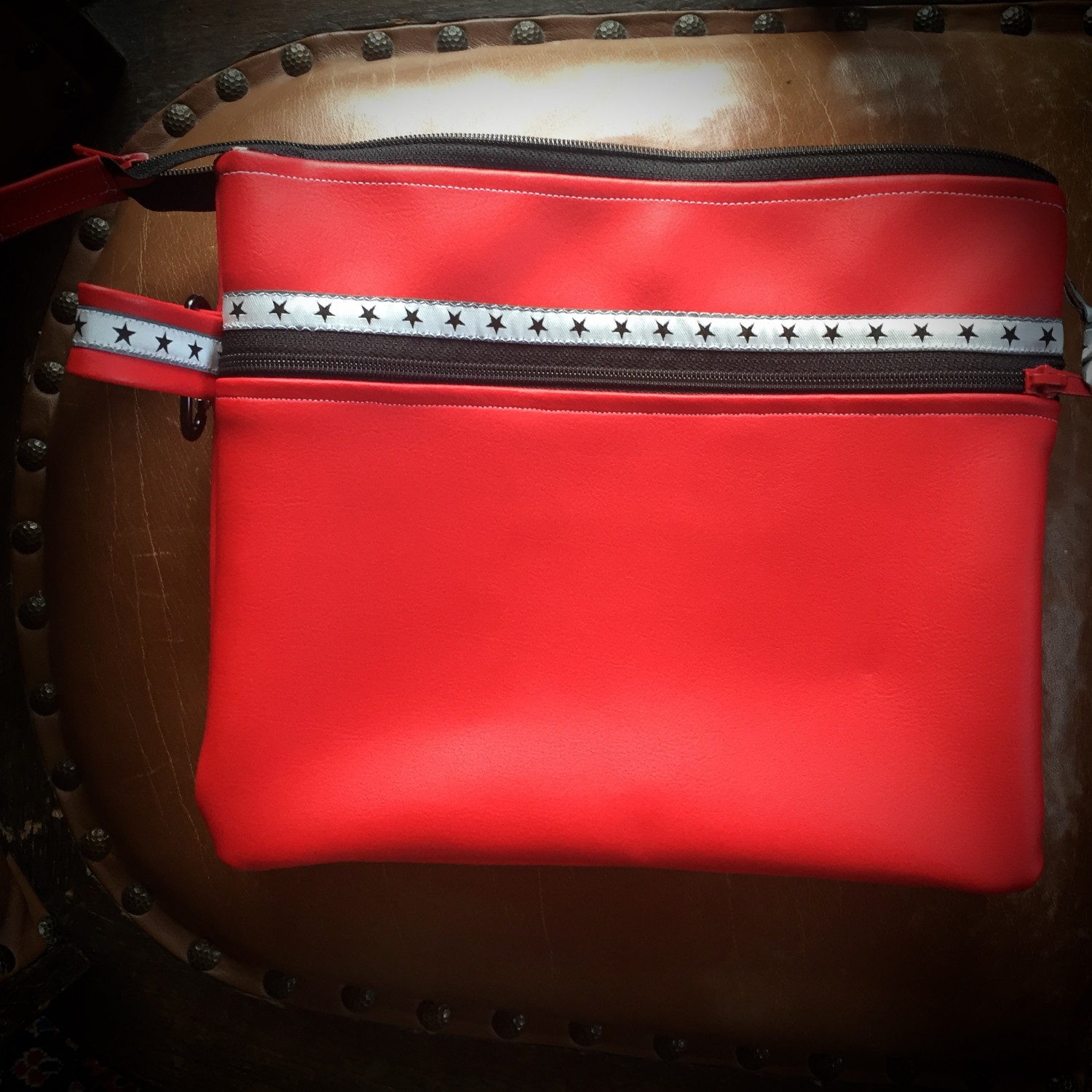 Kunstleder rot aus dem Fundus, Innenstoff und Reissverschlüsse von Turke Nähshop Uster.