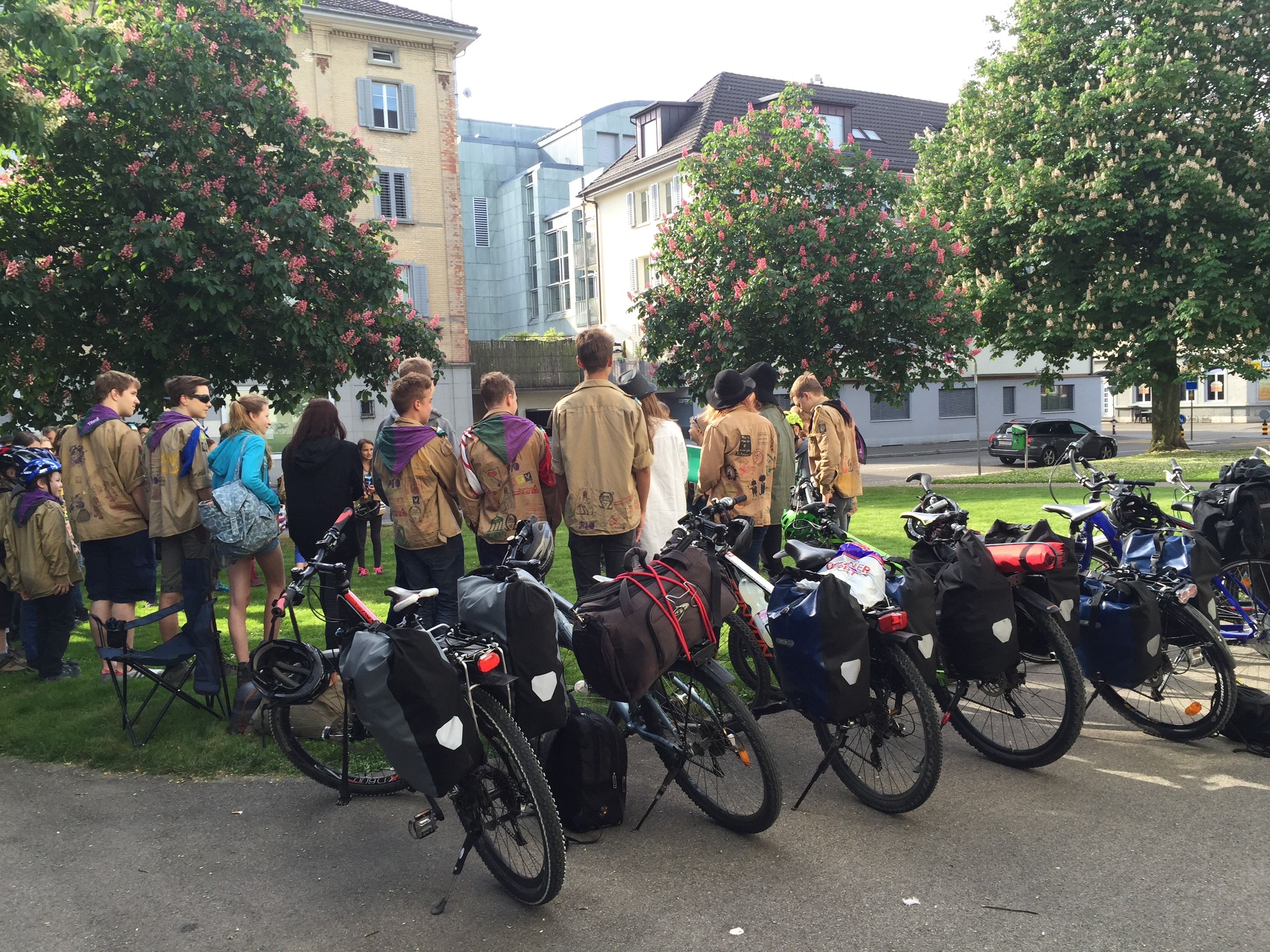Es ist der Lauf der Zeit – wir freuen uns, dass die Kinderlein grösser und selbständiger werden, dass wir ein ganzes, langes Auffahrtswochenende „sturmfreie“ Bude haben (und den frierenden, durchnässten Pfadfindern nur notfallmässig eine Portion Wolldecken, Faserpelze und Skiunterwäsche bringen mussten) und wir immerhin ansatzweise sehen, dass unsere Erziehung greift. Man beachte dazu das Bild vom Antreten ins Aula der Pfadfinder…