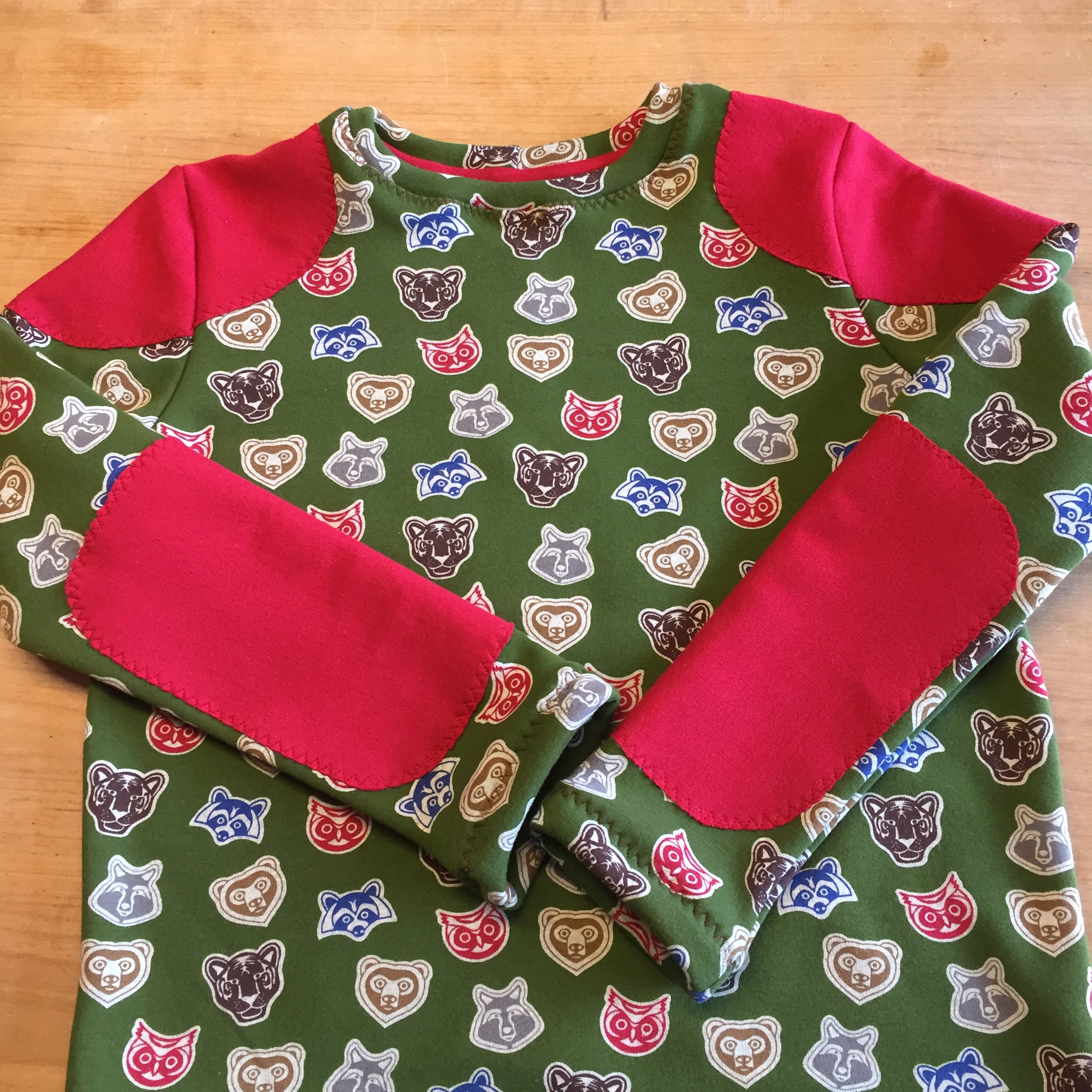 Eigentlich sollte das ein T-Shirt werden, aber der Kuschelstoff hat mich blitzschnell überzeugt: ein Pullover muss das werden! Das Werk ist verschenkt, ein Feedback steht noch aus, aber ICH fand’s cool! Und in Tat und Wahrheit ist die 10 nicht so schräg! Halsbündchen mit neuer Technik mit Einfassstreifen genäht – auch cool!