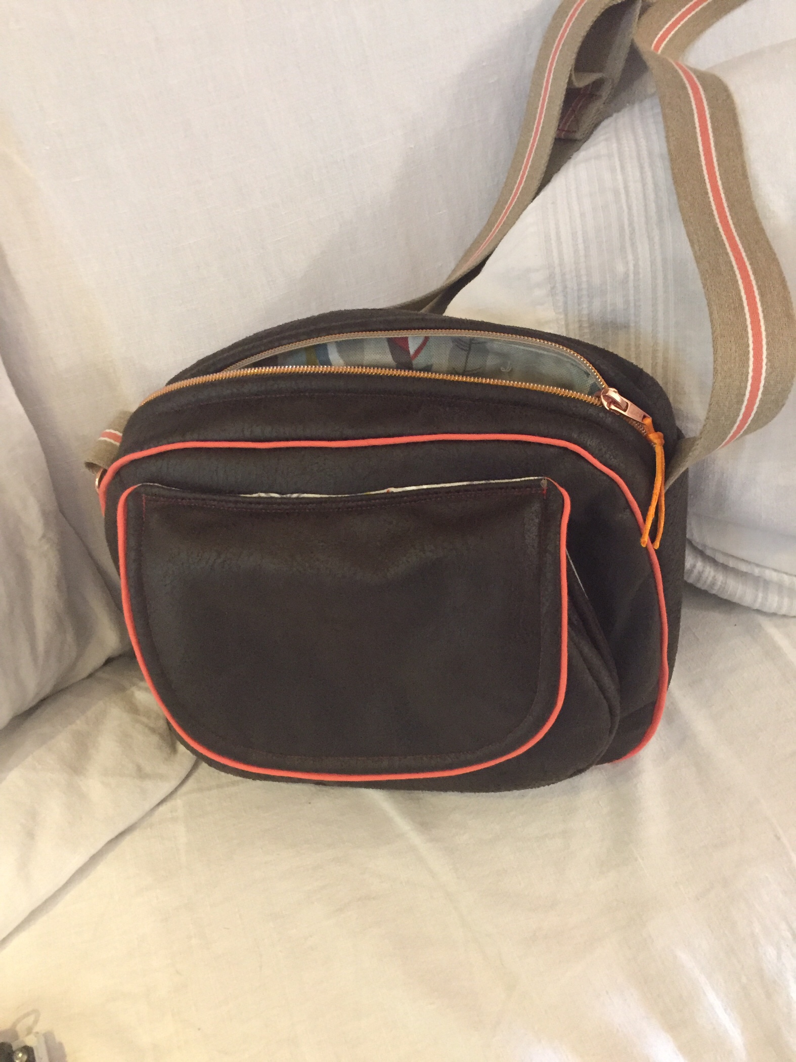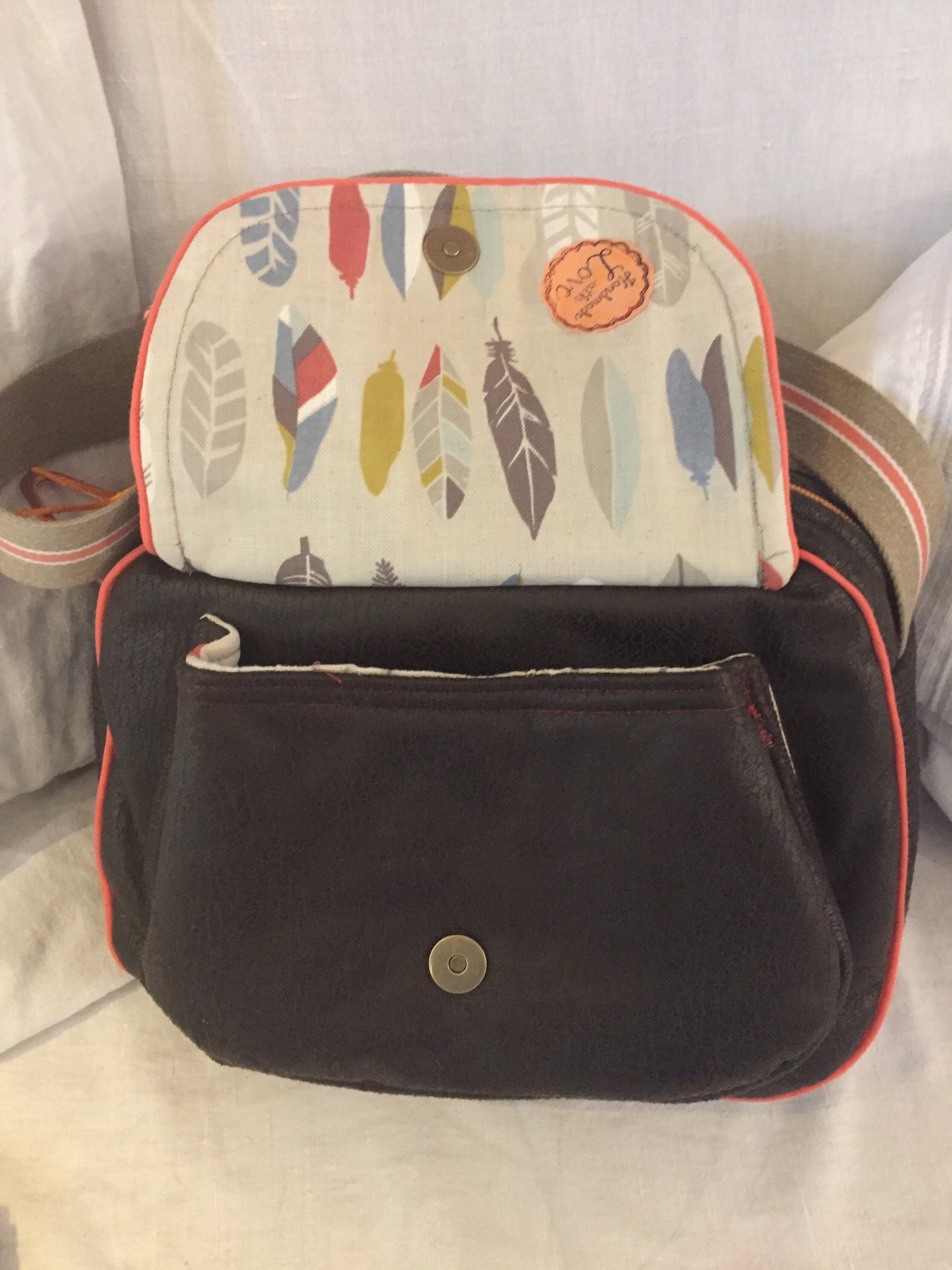 La voilà! da ist sie. Meine Alltagsheldin aus braunem, nicht ganz glattem Kunstleder, abgefüttert mit einem wunderschönen Federli-Stoff japanischen Ursprungs…