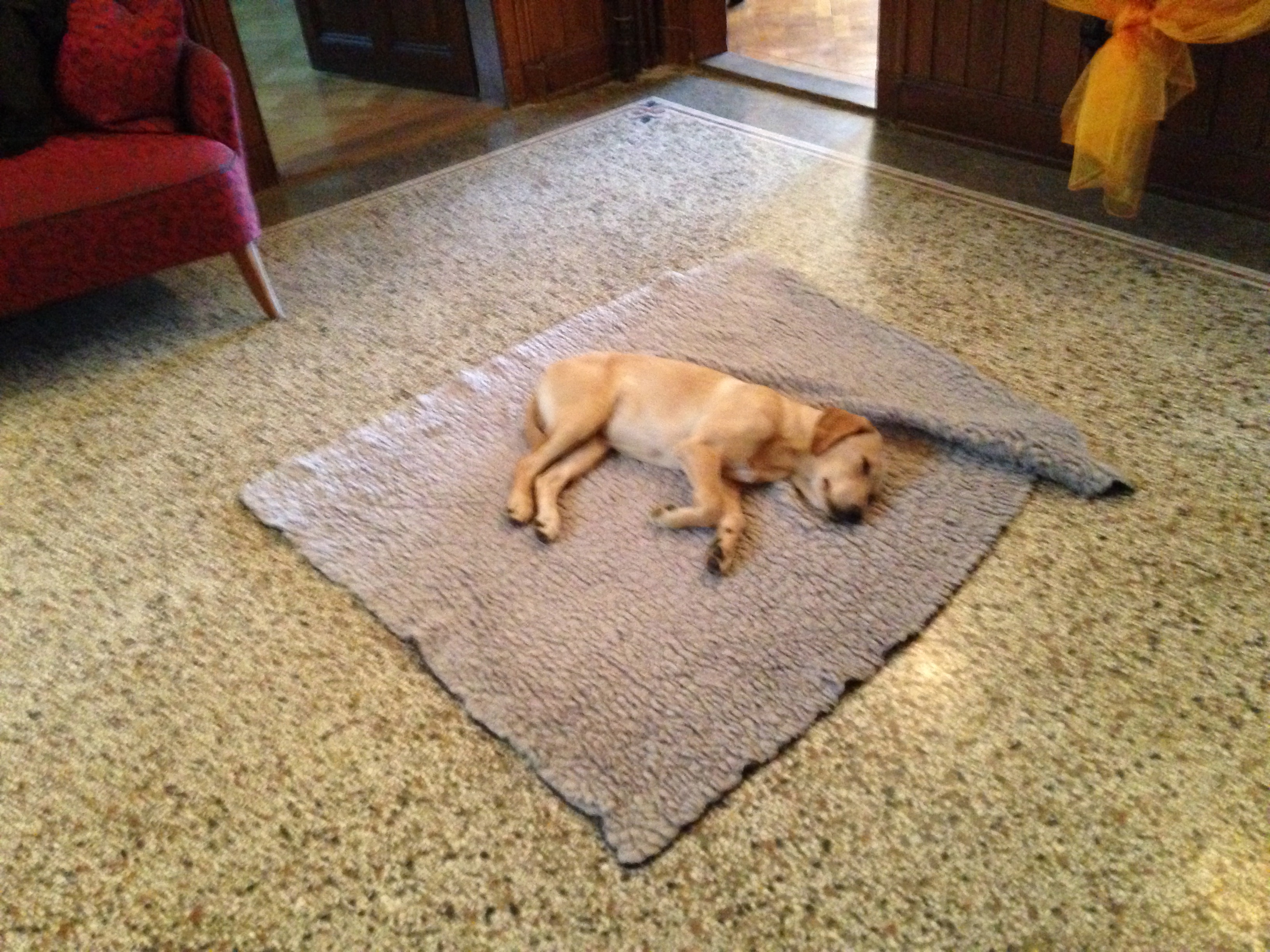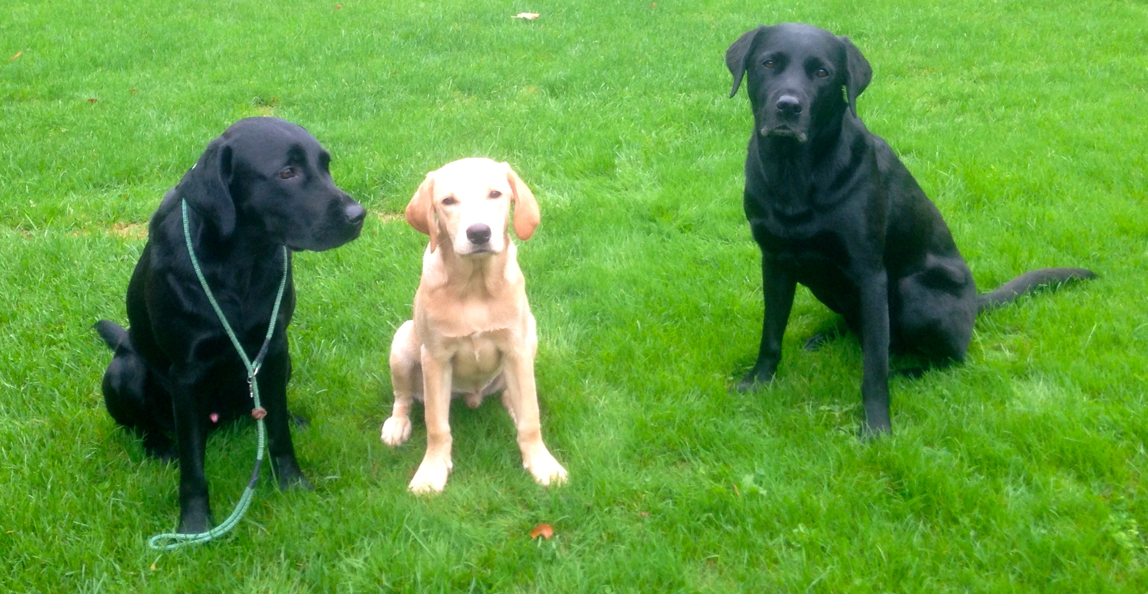 Zu Beginn der aktuellen Sintflut haben wir uns noch auf die grosse Hunderunde begeben. Das Milchschnittenteam -noch trocken- ausnahmsweise ganz artig. Von links: Bob, Elio und Kieran.
