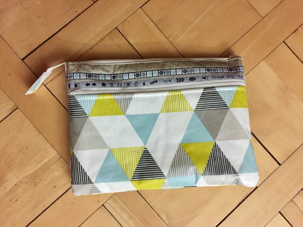 Plastifizierte Baumwolle und Leinen von www.kuntundbunt.ch, Reissverschluss ebenso, Bänder aus der Reservenkiste, Schnitt: 5-fach Organizer von www.farbenmix.de angepasst auf Bedürfnisse.