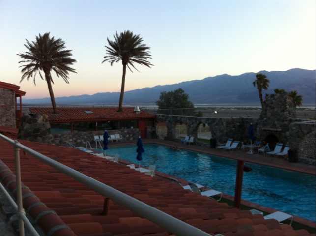 Weiter ging es dann durch die Wüste, schnurgerade Strassen über ewige Zeit, Berge, Hügel, Ebenen, kein Mensch, kein Baum… Und dann endlich, kurz vor 1900h sind wir in Furnacecreek gelandet. Eine Oase… Und dass hier nebst herrlichem Pool auch noch eine sensationelle Küche auf uns wartet… Wer hätte das gedacht!