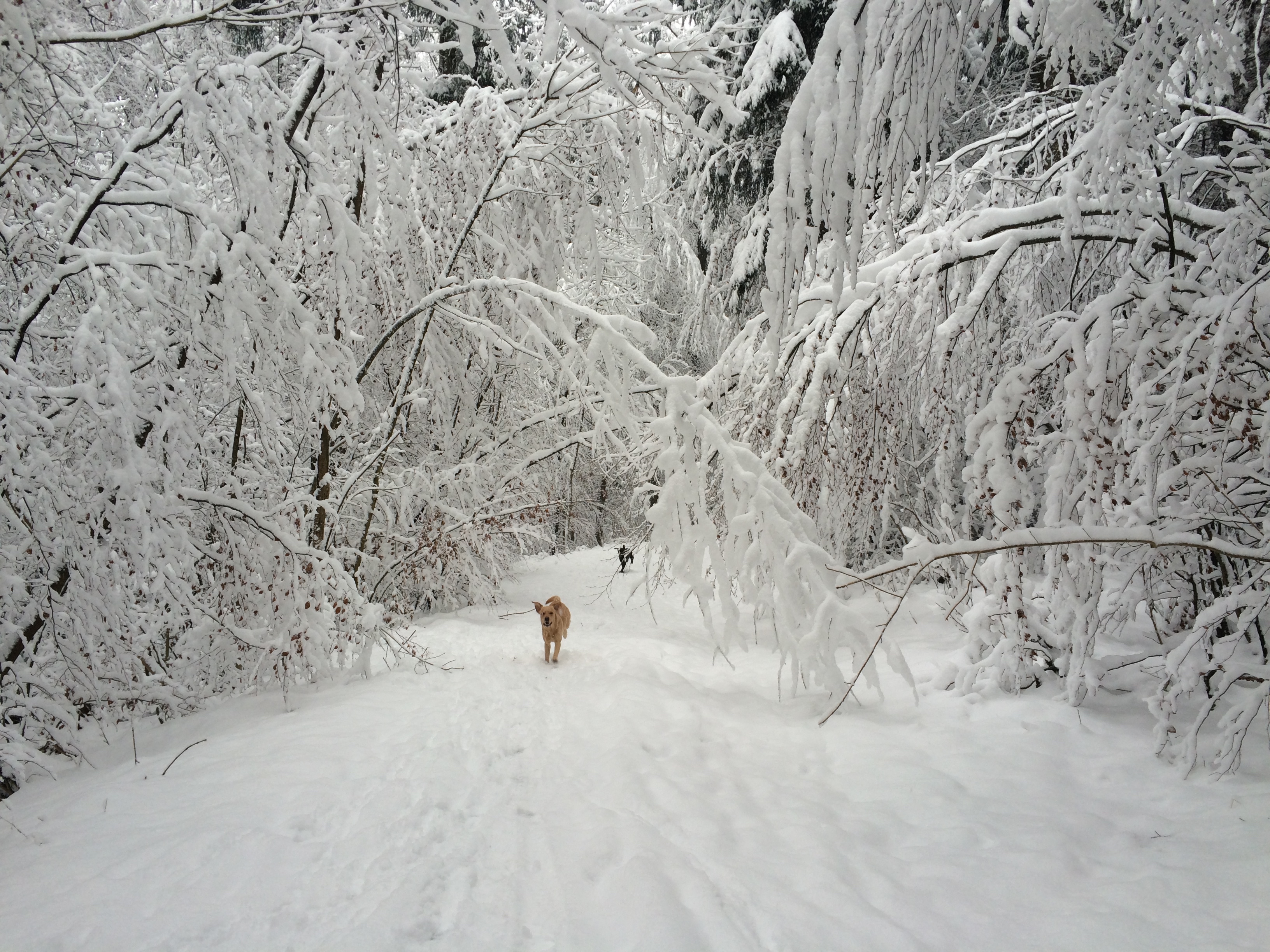 …aber doch nicht die ganze Ladung auf einen Klatsch! Es schneit. Und schneit. Und schneit und schneit. Es schneit langsam, stetig, mal gross-, aktuell seit Stunden gerade kleinflockig, aber eigentlich schneit es rund um die Uhr seit Samstag. Das bleibt nicht ohne Wirkung…