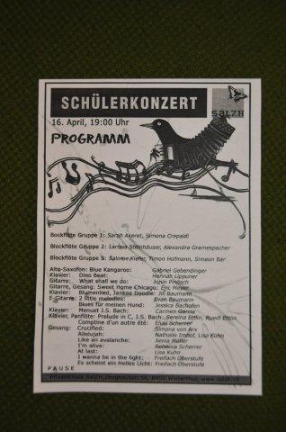 Am Freitagabend hat in der Musikschule der Schule das Schülerkonzert stattgefunden. Die Minis auf den Blockflöten, an der Gitarre, gar hinter der E-Gitarre, die Grösseren am Klavier, einander begleitend, den Gesang auf der Bühne begleitend… Es gab alle Variationen auf einem beeindruckend hohen Niveau und bitte sehr, ICH täte ja vor Angst eingehen, wenn ich da vorne auf die Bühne stehen müsste. Hut ab, ihr habt das alle hervorragend gemacht und gezeigt, dass Musik eine gute Entspannungs- und Ausdrucksmöglichkeit ist. Mehr Bilder gibt es auf der Website der Schule, nämlich hier.