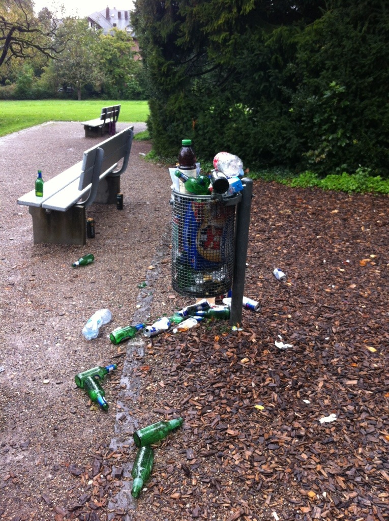 Nein, leider im Stadtpark. Einfach widerlich, jeden Morgen, diese Schweinerei!