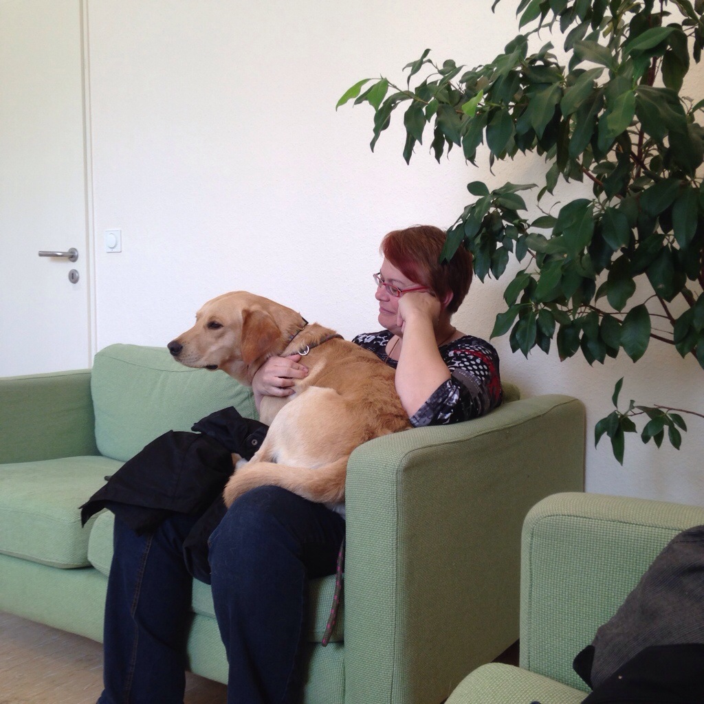 Es dauerte allerdings eine gefühlte Ewigkeit, bis dann auch noch alle Papiere (Zahnstatus? OCD? HD? ED?) korrekt ausgefüllt und abgestempelt waren und eigentlich war der Tag schon um, bevor er richtig begonnen hatte. Das Wartezimmer roch ziemlich nach Hund und mindestens 1kg schwarze Haare haben wir da auch gelassen….