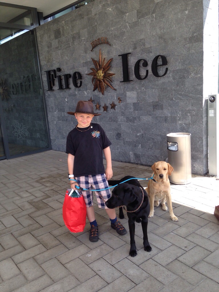 Wir haben dann, wie schon vor einem Jahr, im Hotel an der Skihalle „Fire & Ice“ eingecheckt und uns erstmal herzlich über das Wiedersehen mit Familie Spelter & Co. gefreut. Feine Spargeln, kiloweise Labrador – ein schöner Abend, aber zeitig ging es in die Federn, schliesslich stand am Freitag das kollektive Röntgen des E-Wurfes an.