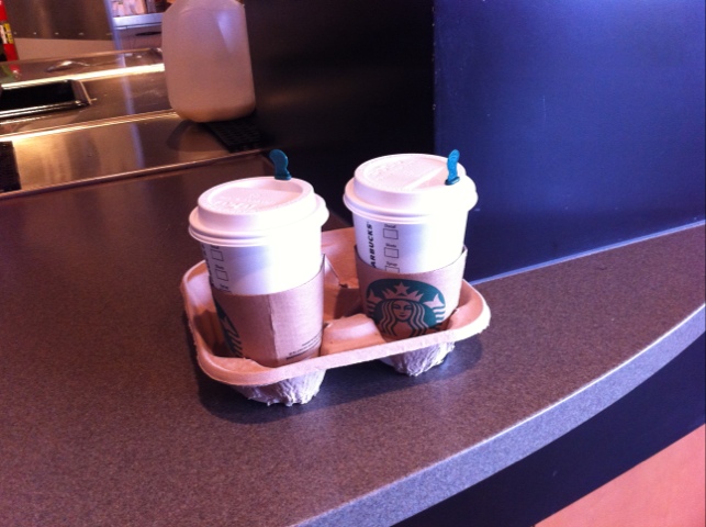 Das Problem mit dem (für uns) lampigen Kaffee haben wir hier elegant gelöst… Eine Fahrt mit Megan zum Starbucks und schon klebt es überall.
