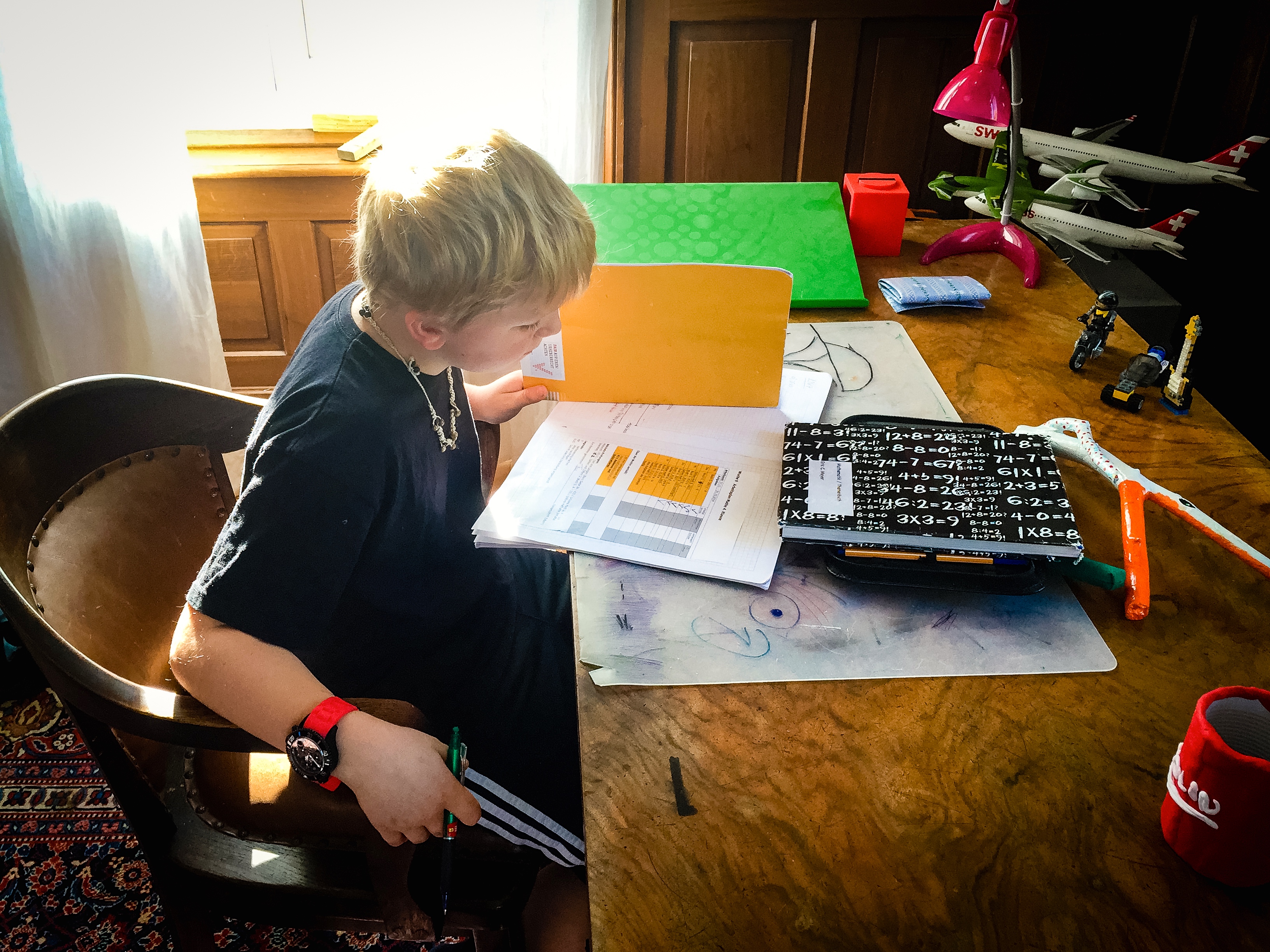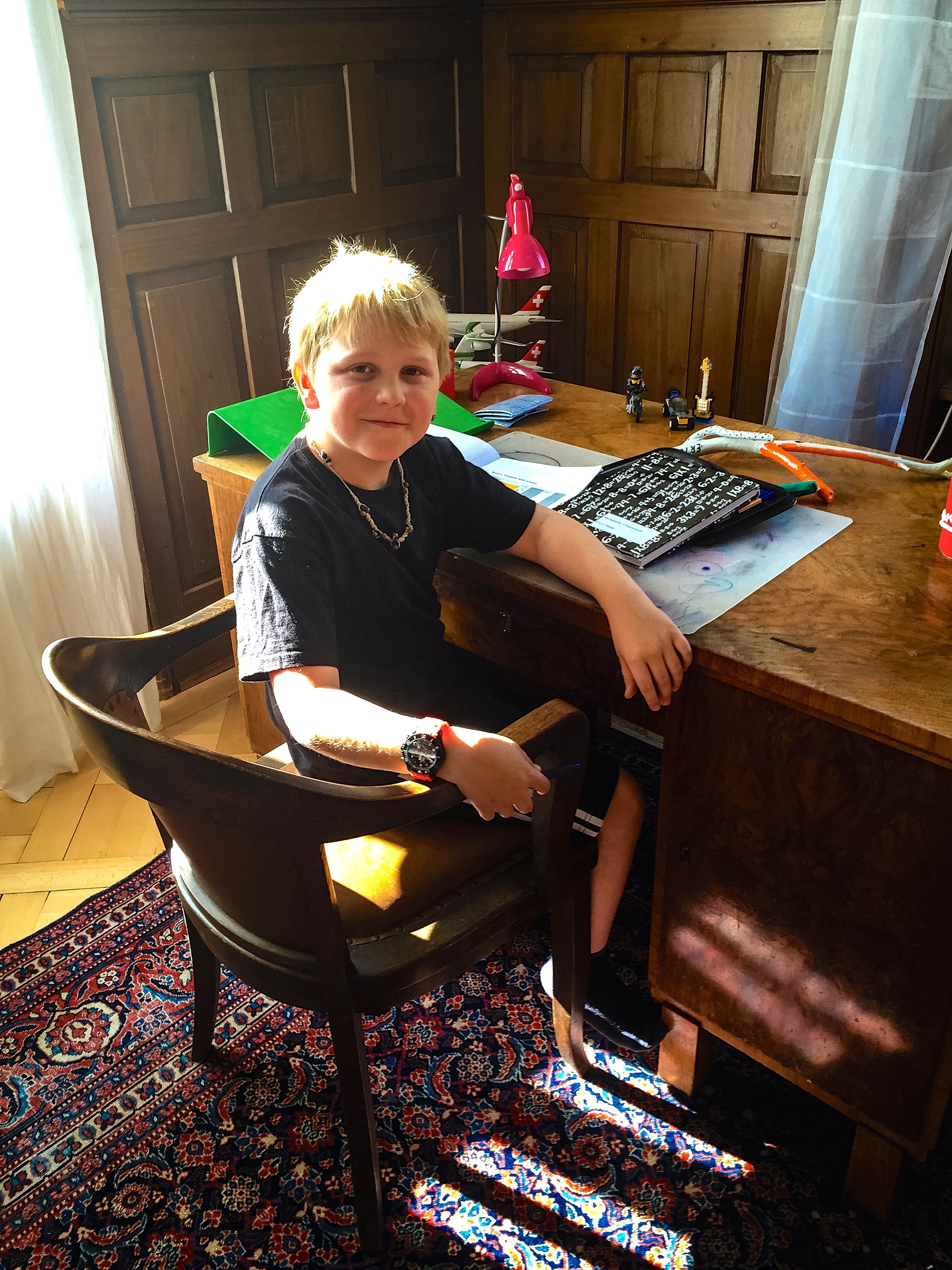 Zuhause dann, der innere Dienst… Wir ziehen mal wieder um. Nein, keine Bange, nix Dramatisches, aber wir verschieben Arbeitspulte. AnnA werkelt neuerdings am Pult von Urgrosspapa (noch nicht fertig gefiedelt und eingeräumt) und Eric? nun ja, welcher Viertklässler kann schon von sich behaupten, am Pult eines Nobelpreisträgers seine Ufzgi zu machen?