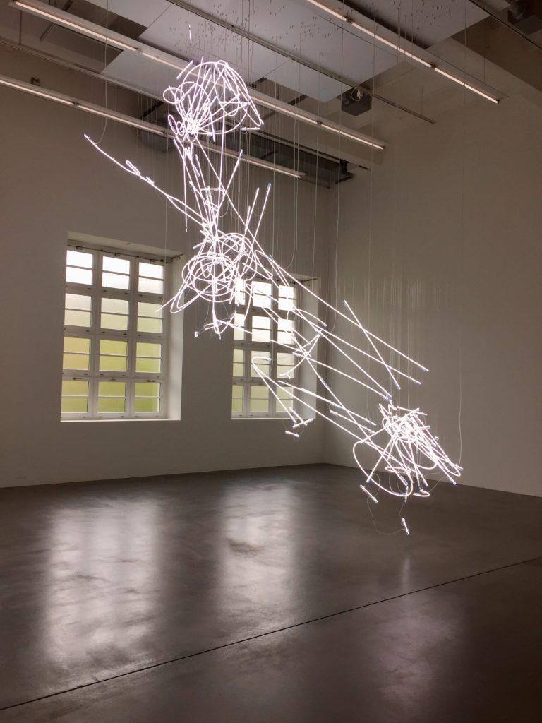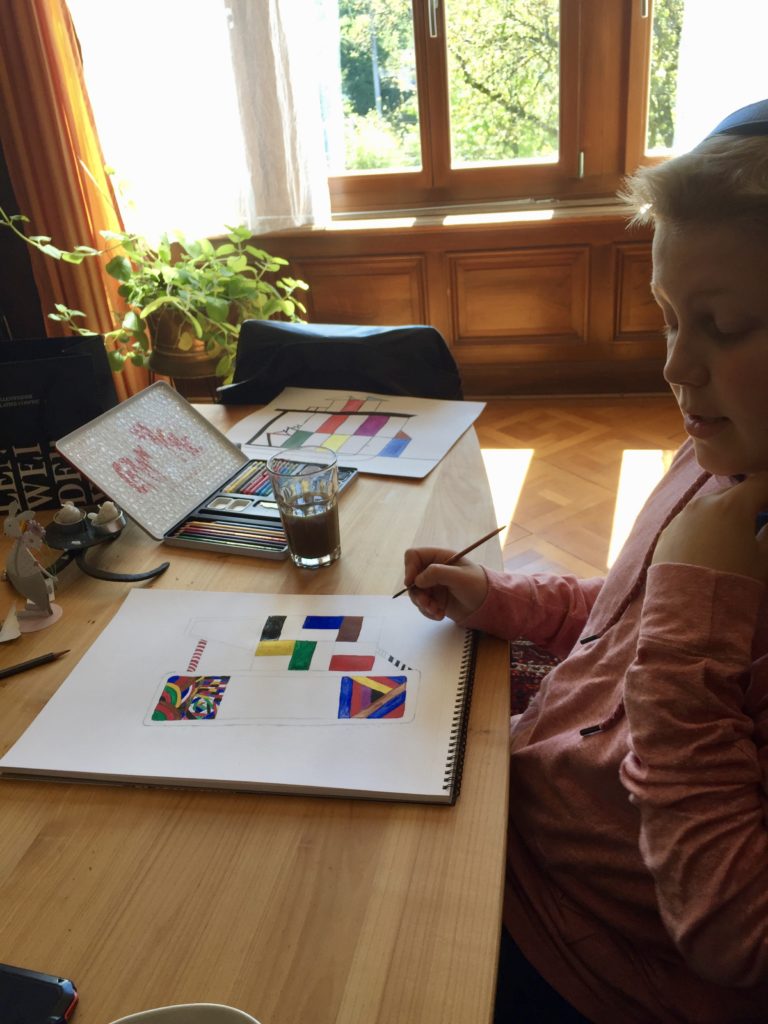 Mittlerweile ist Eric auch klar, weshalb auch Skizzen, erste Entwürfe von Bildern ausgestellt werden. Wir waren danach nämlich noch im Haus Konstruktiv und habe tolle Installationen und Bilder bewundert. Diejenige Künstlerin allerdings, die mich hierher gelotst hat, durfte leider nicht fotografiert werden. Marlow Moss, eine Zeitgenossin und Beinflusserin / beeinflusst von Piet Mondrian, eine Engländerin – womit der Bogen zur ersten Ferienwoche auch grad wieder geschlossen wäre.