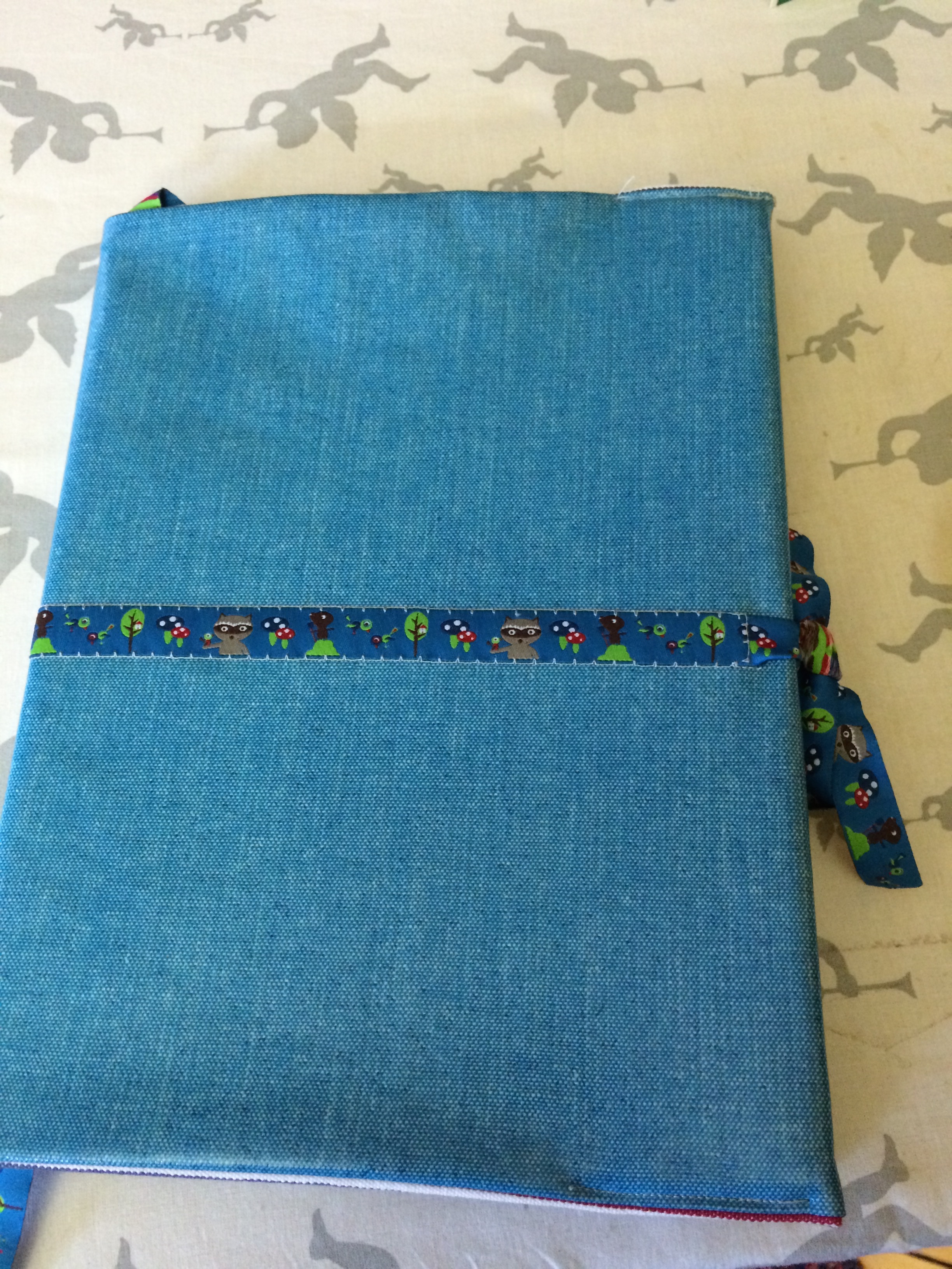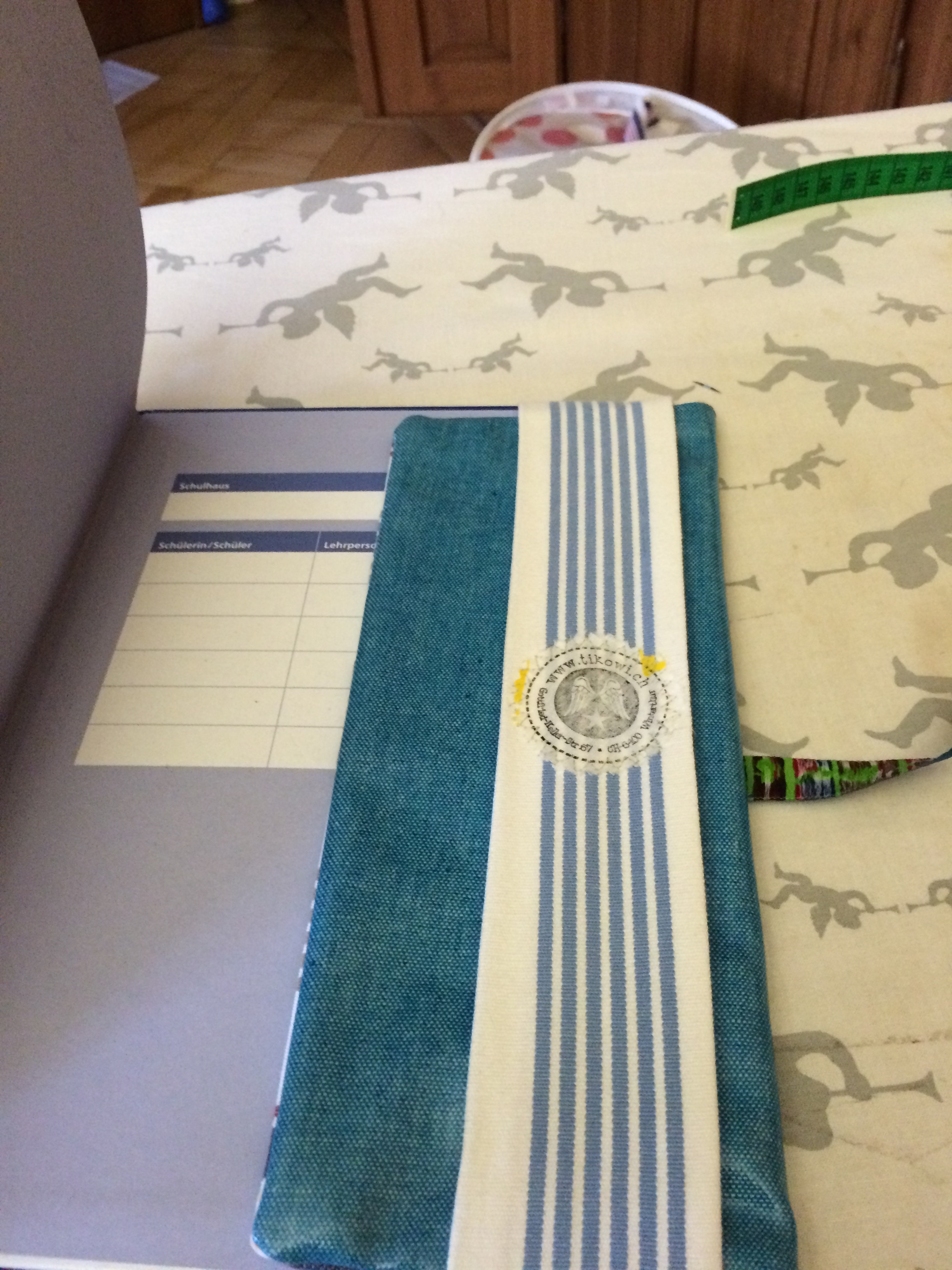 … wäre es manchmal gescheiter (lies: entspannter), wenn man flugs zur Seite springen täte. Eric’s Mathebuch sah -schon wieder- fürchterlich aus, so dass mental ich kurz an einer plastifizierten Stoffhülle rumturnte. Zwei Stück Stoff aufeinander halten, gegeneinander… Moment, da war mal was im Internet. GENAU!