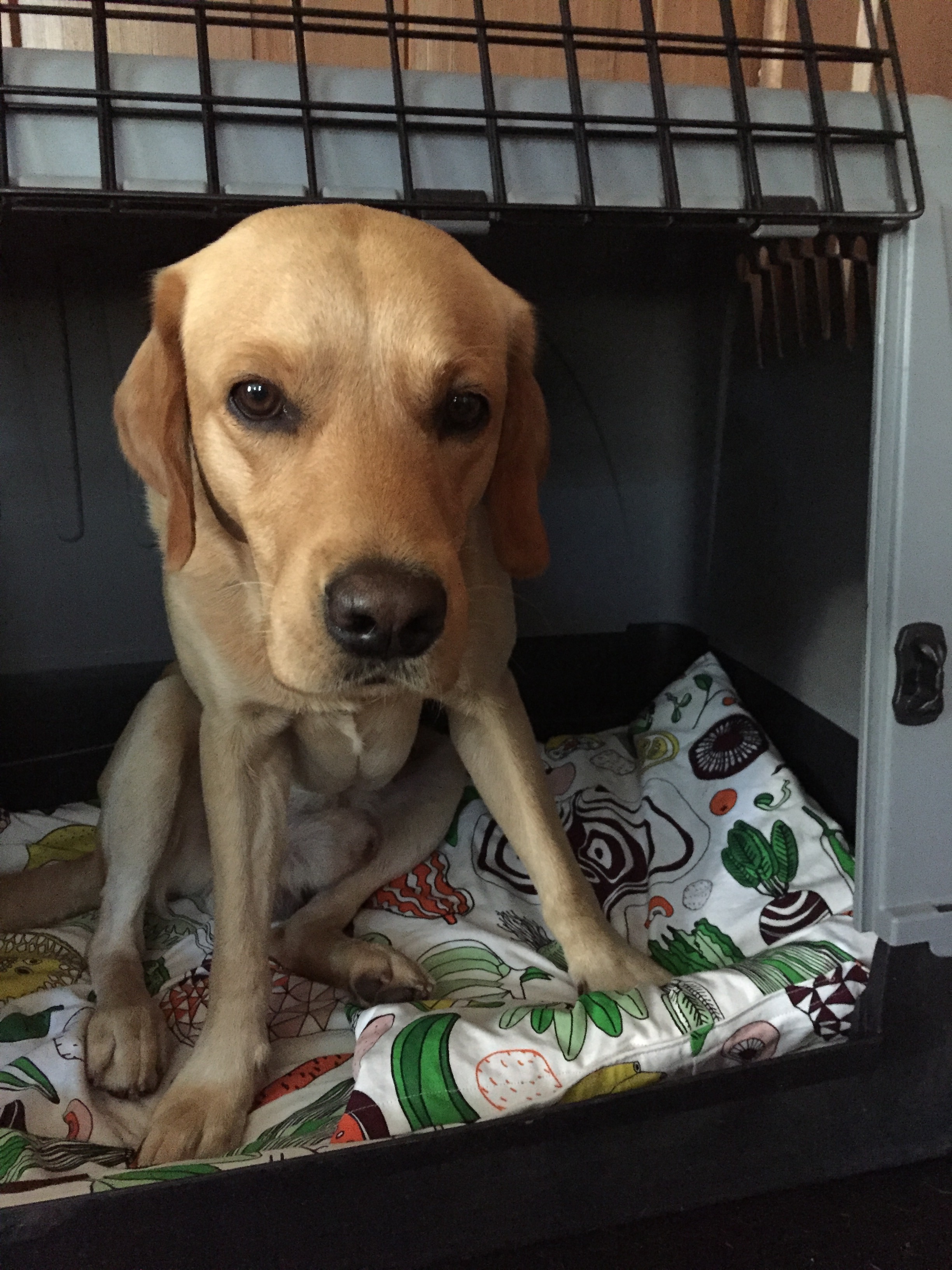 Das blonde Tier auf alle Fälle ist happy über sein neues Bett samt Kissen. Allerdings bin ich der Meinung, ein Kopfkissen diene dazu, den Kopf darauf zu betten. Die Hunde sind da anderer Meinung und tragen die Kissen stolz in der Gegend herum.