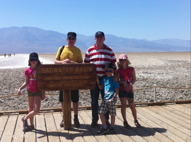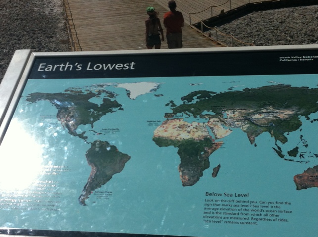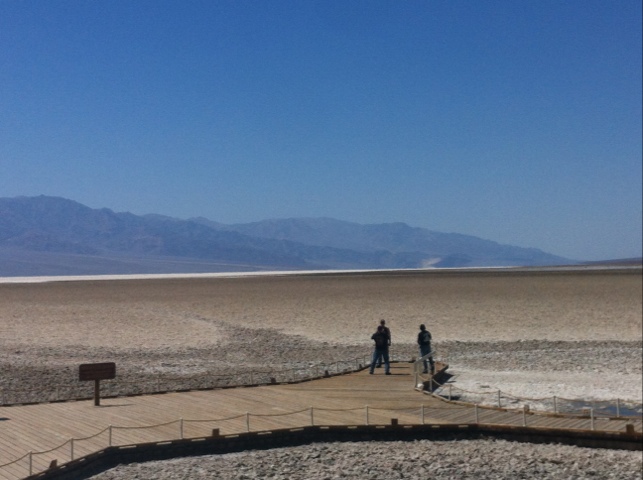Nach der Höhe rumpeln wir über Stock und Stein in die Tiefe und besuchen Badwater – den tiefsten Punkt der Welt, 88m UNTER Meer. Beeindruckende Salzwüste, keine Pflanzen, sauheiss, totenstill (ok, eine Gruppe Harleyfahrer ausgenommen) und einfach eine beeindruckende Menge an Natur. Wir halten es mit Eric: der liebe Gott hat das wirklich ausgezeichnet gemacht und uns eine beeindruckende Menge an Naturschönheuten hinterlassen. Wir sollten Sorge dazu tragen!
