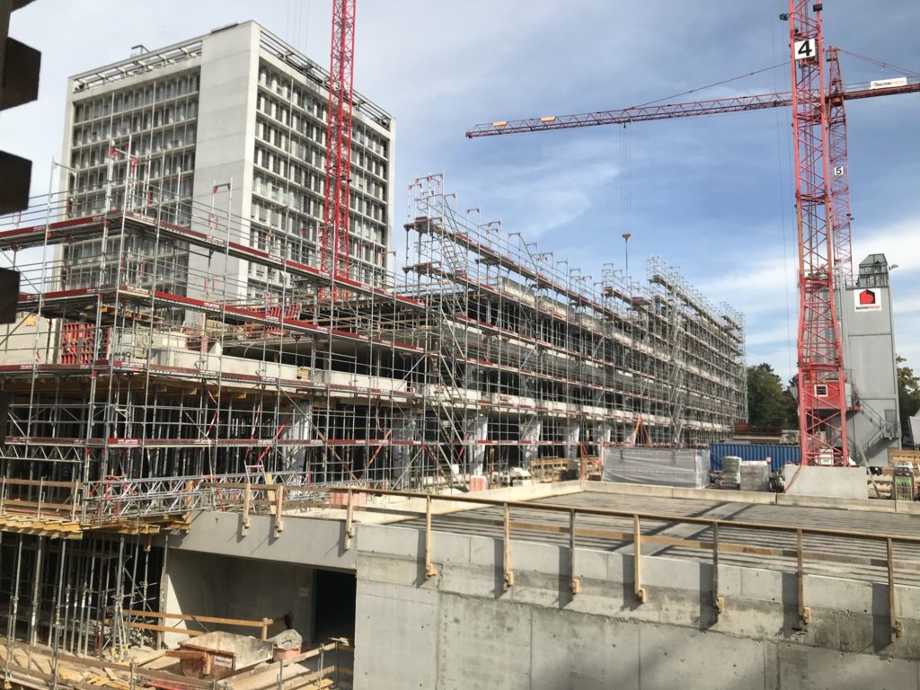 …beim Kantonsspital ist der Baufortschritt jetzt, da er über dem Boden stattfindet imposant und nicht mehr zu übersehen. 8 Stockwerke hoch soll es werden, das neue Bettenhaus des KSW oder kurz Didymos genannt. Schon bald, anfangs 2019 soll die Aufrichte gefeiert werden und 2021 wird das Gebäude in Betrieb genommen.