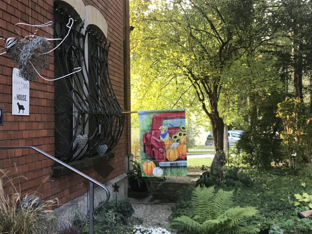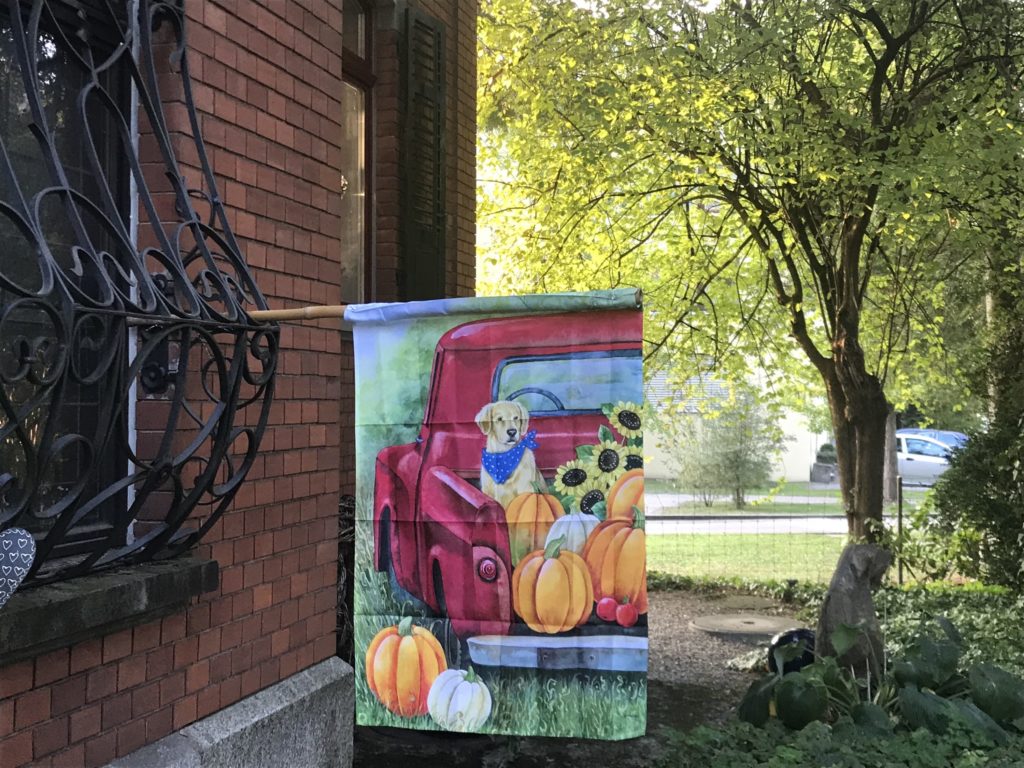 Die Flagge macht sich doch aber auch wirklich gut hier. Farbenfrohe Kürbisse, ein toller roter Chevi und meine Lieblingsblumen!
