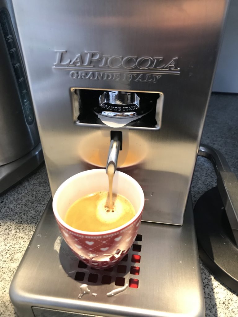 Ich gebe es gerne zu… ohne anständigen Kaffee am Morgen läuft hier im Hause nicht viel Gescheites. Anständig will heissen, etwas in Richtung Espresso, dunkel, schwarz, dick, mit einer Creme und vor allem soll die Maschine nicht rumzicken.