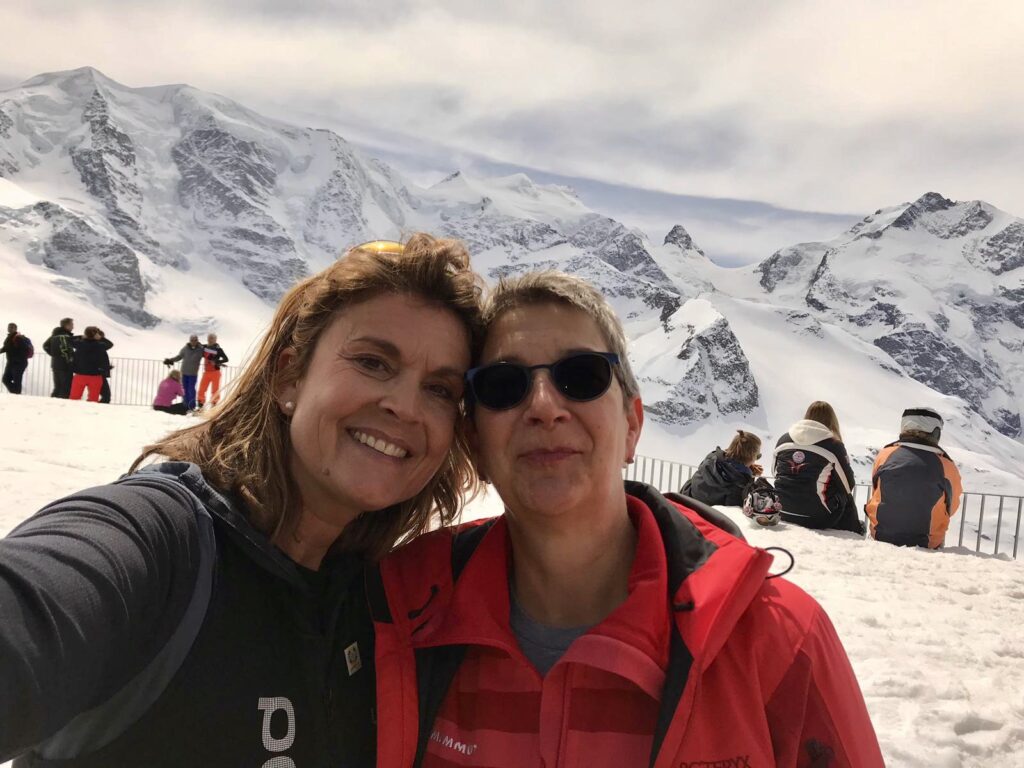 Corinne und ich – Diavolezza mit Biancograt im Hintergrund