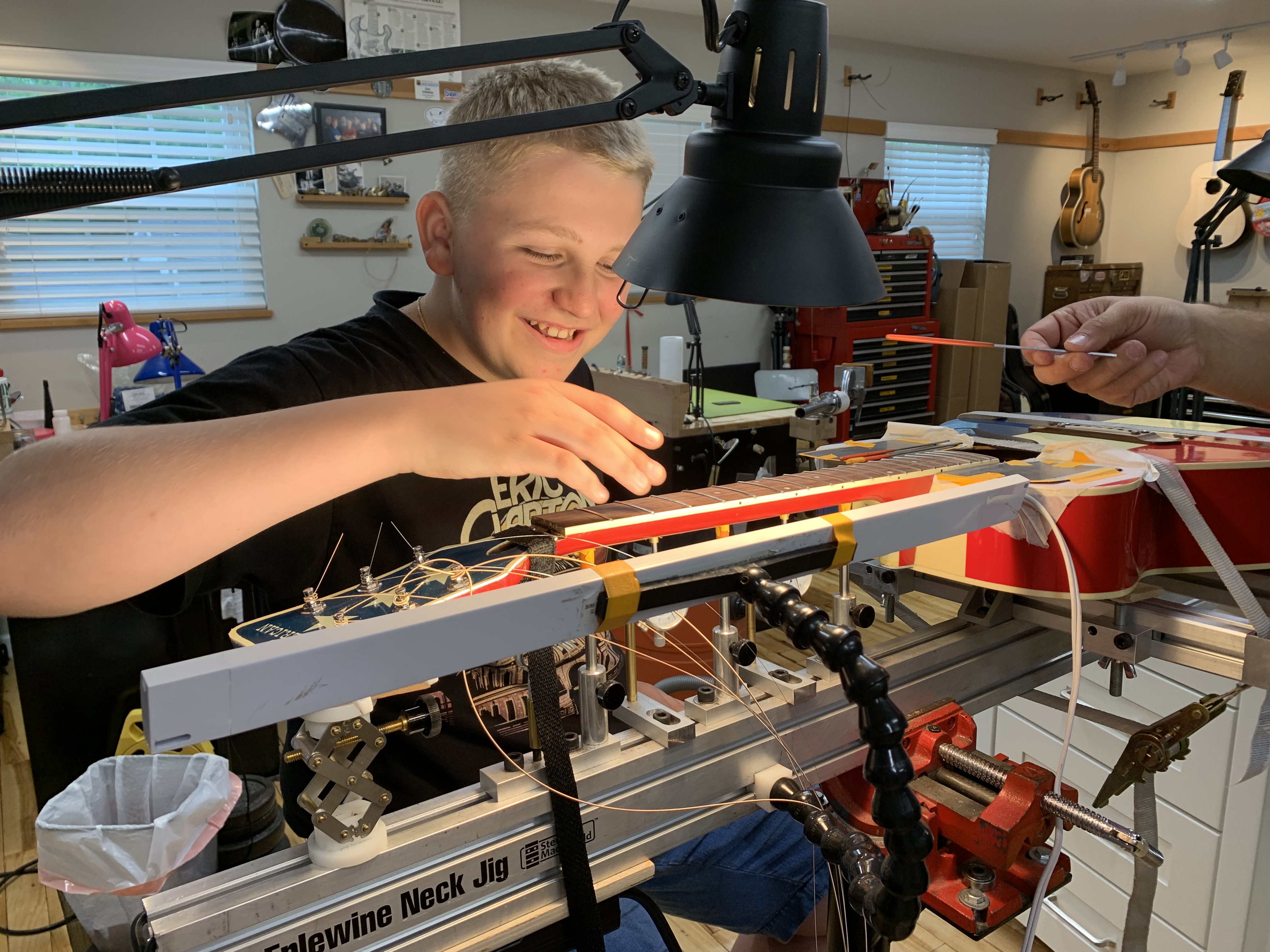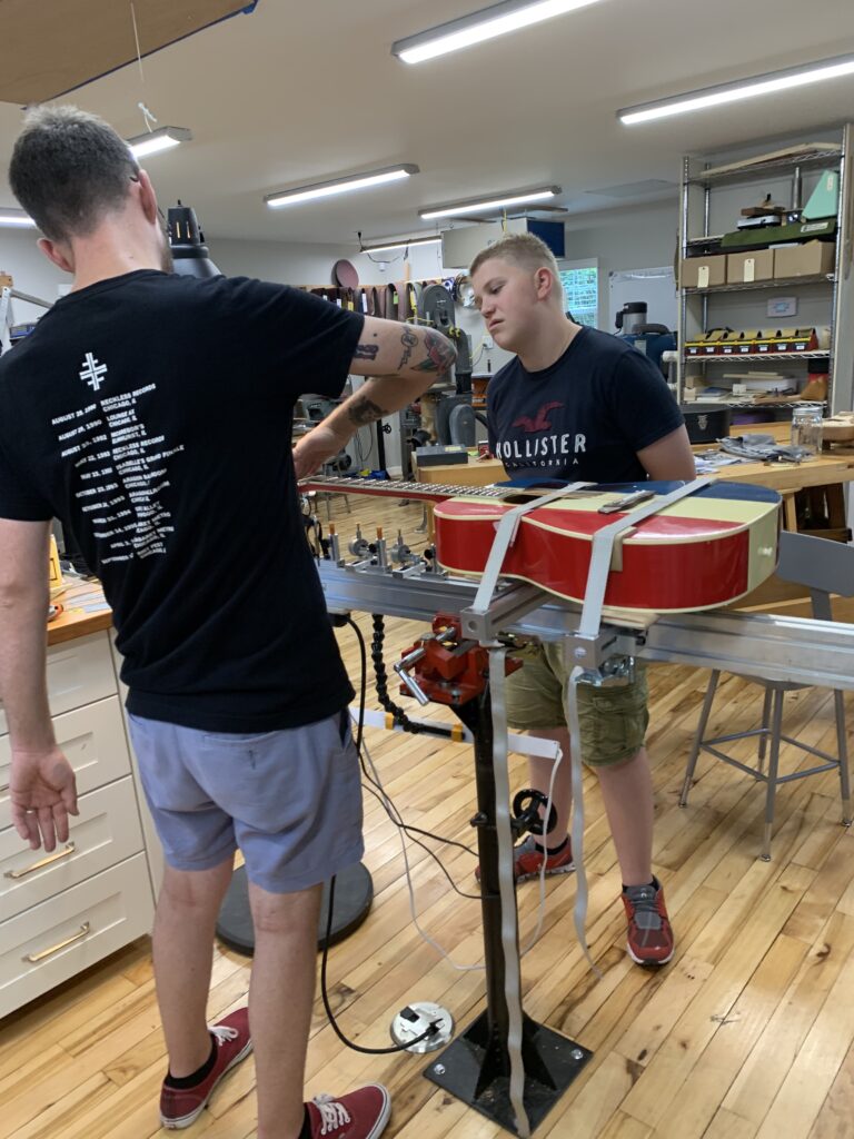 Mittlerweile sind wir in Athens / OH, wo Eric bei einem, na ja, eigentlich bei DEM Gitarrenbauer schnuppern darf.