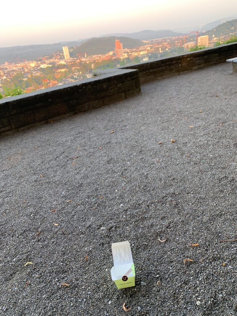 Schön wäre es, wenn sie den Abfall wieder nach Hause nehmen täten. Gopfridstutz!
