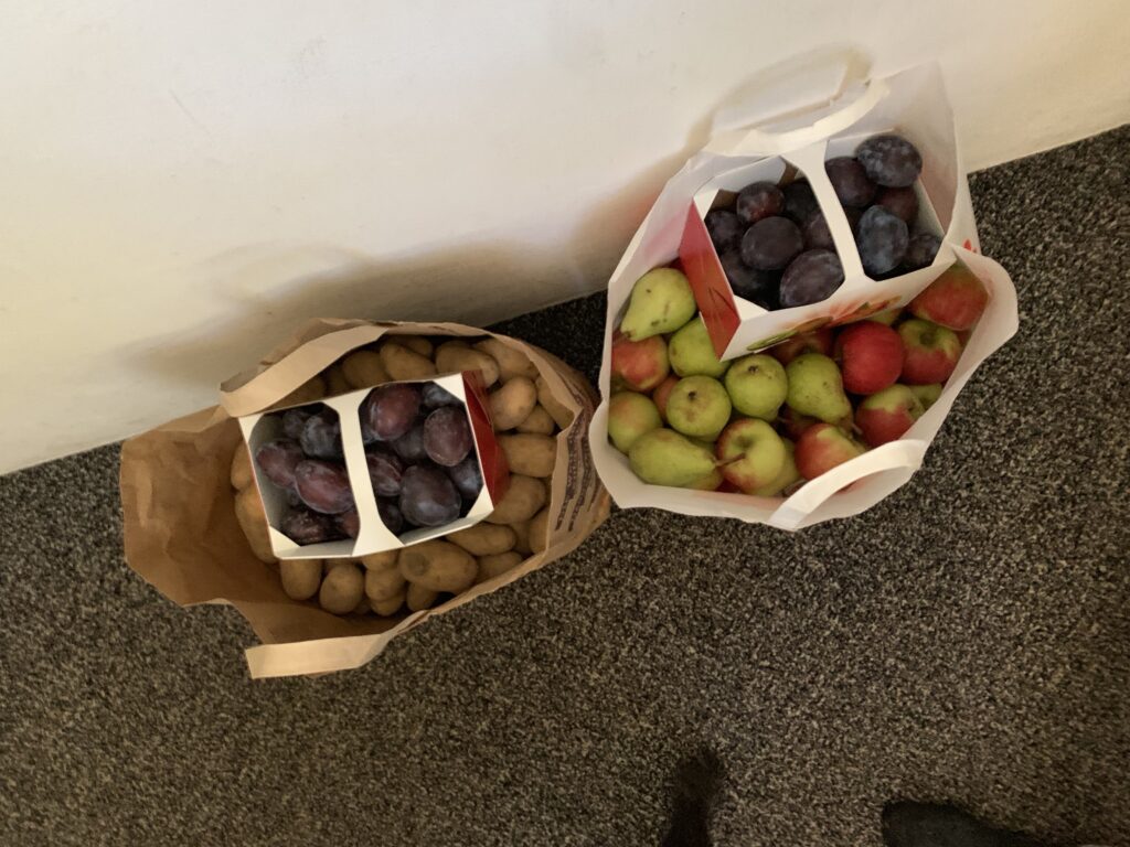 Der Apfelbauer war hier… mmmmh! und hat nebst Äpfeln und Kartoffeln auch noch grad Birnen und Zwetschgen für die traditionelle Bettagswähe hier gelassen. Die Zwetschgen samt Wähe haben reissenden Absatz gefunden, alles weg!