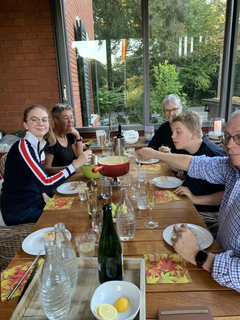 Wir haben die Woche noch bei Vollmond bei Candlelight das traditionelle Endsommerfondue auf der Terrasse genossen. Mit Pam aus Hollywood. Und Charly, aus Vältä… in einer grandiosen Mischung aus Englisch, CH-Deutsch, kunterbunt und thematisch weiiiit zwischen Gitarren (ah ja), Politik und Käse.