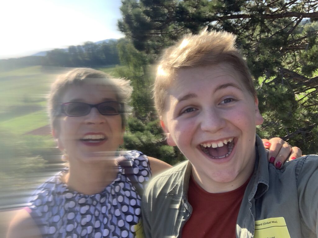 Mit Eric habe ich noch die Dachzinne bestiegen – ein Selfie mit dem unscharfen Rand meines Handys… erinnert mich dennoch wohl noch lange an Erics Spruch da oben: «Ach, DAS hätten wir nie verkaufen sollen!» Der dezente Hinweise, WER dann den riesigen Garten und das Haus pflegen solle, konterte er klar und deutlich: «na Du. Mit dem Gärtner». Na immerhin…