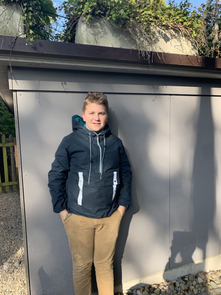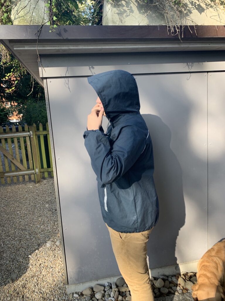 Der zweite Windbreaker ist gerade rechtzeitig zum Ende des Altweibersommers fertig geworden. Wie gewünscht aus Oily Skin. Und der Sichtbarkeit wegen mit reflektierenden Details bestückt.
